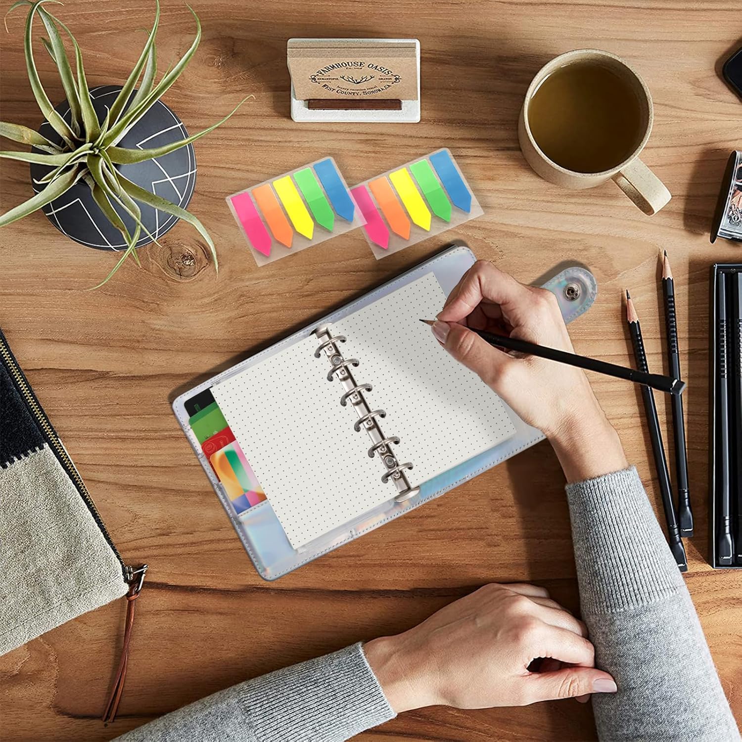 Harphia A7 6 Holes Binder Refill Value Set, 90sheets dotted loose leaf paper with stickers and dividers, planner inserts with binder pockets for A7 binder 6 holes refillable notebook,005dA7dot