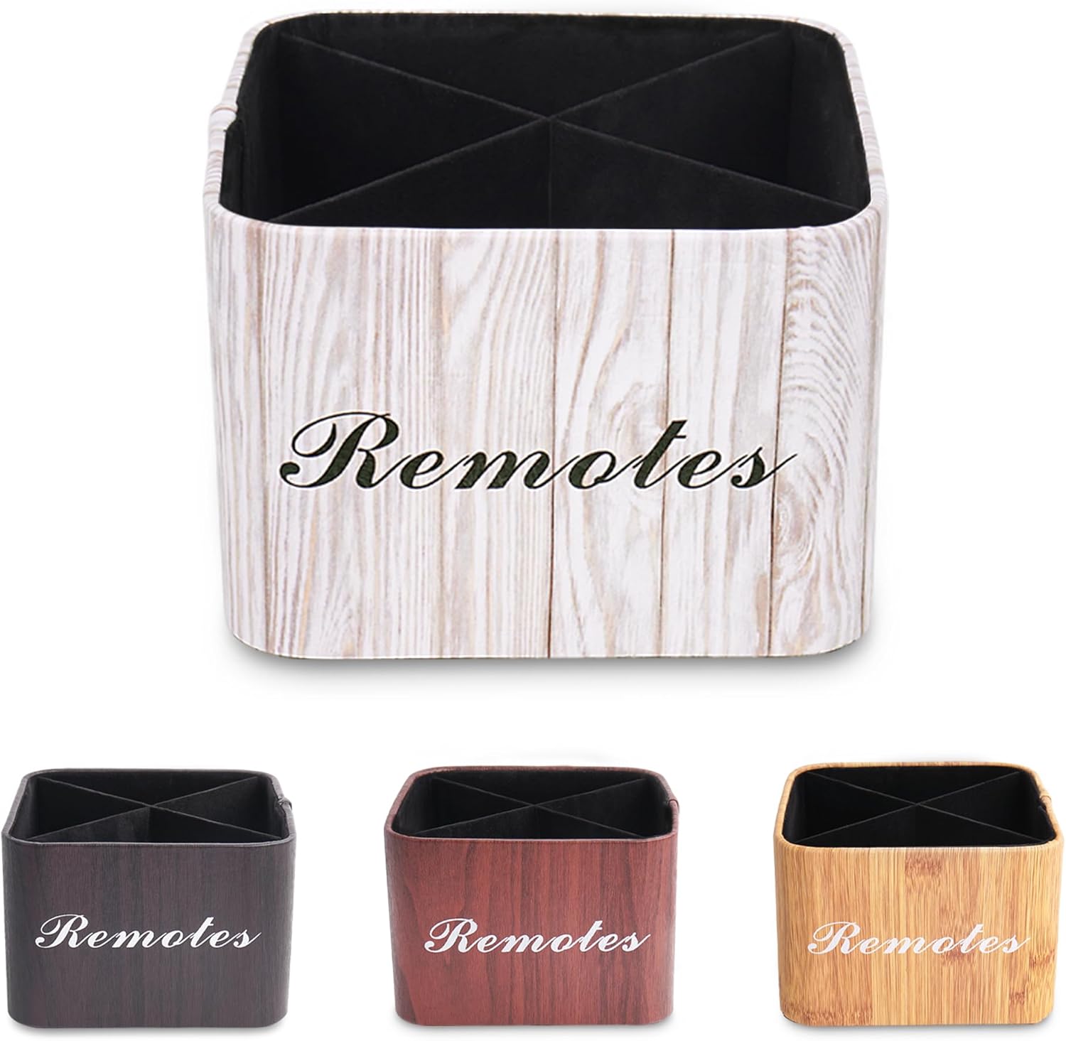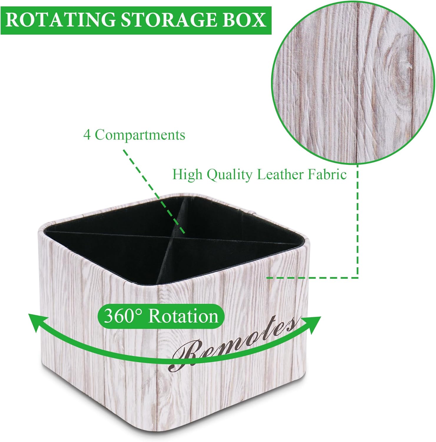Hennaja Square Leather Art Supply Organizer,Remote Control Holder with Removable Dividers,360°Rotatable Pencil Holders,4 Compartments Organizer for Office Supplies Storage Box(1-Light Grey)