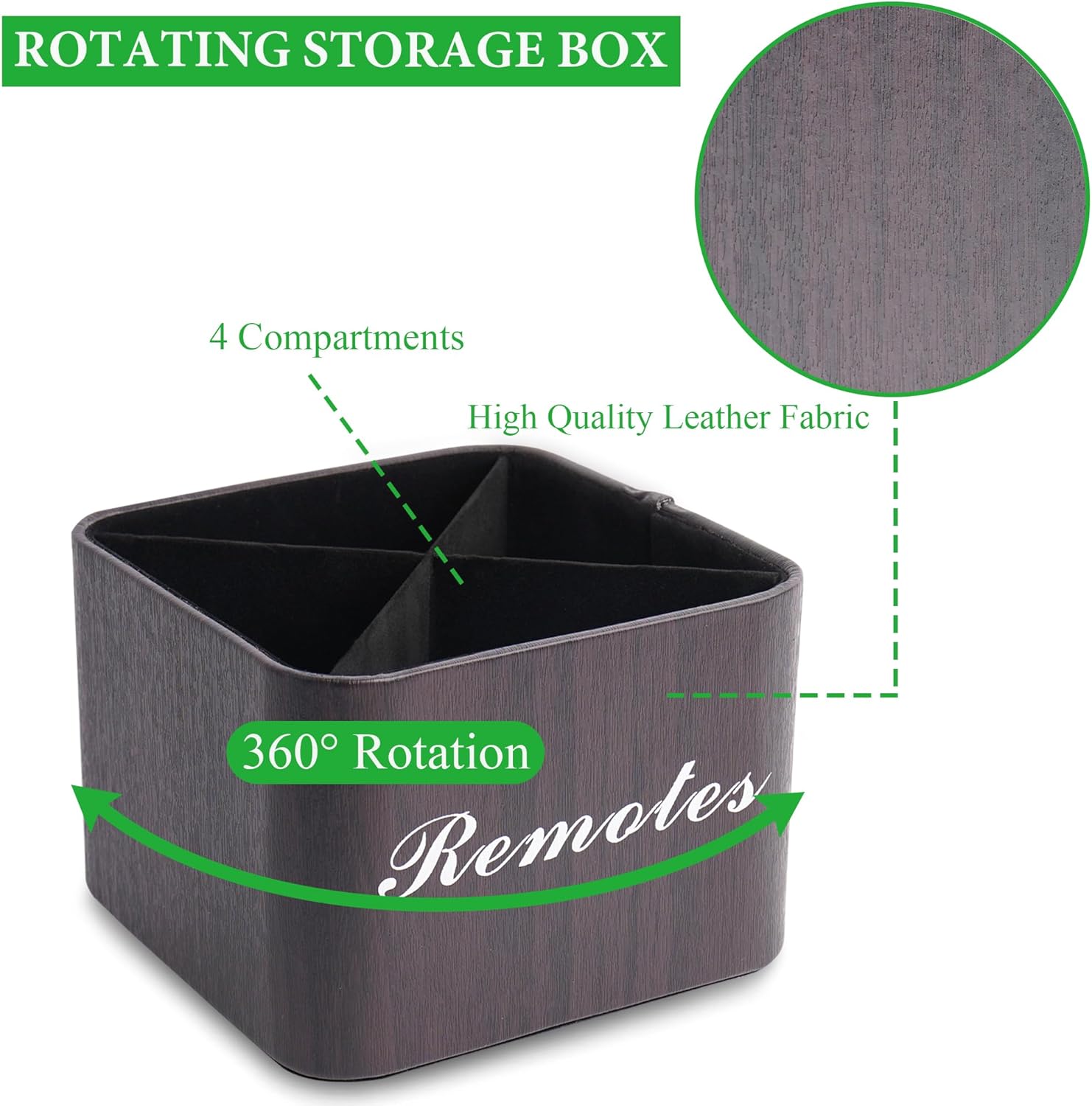 Hennaja Square Leather Art Supply Organizer,Remote Control Holder with Removable Dividers,360°Rotatable Pencil Holders,4 Compartments Organizer for Office Supplies Storage Box(1-Dark Brown)