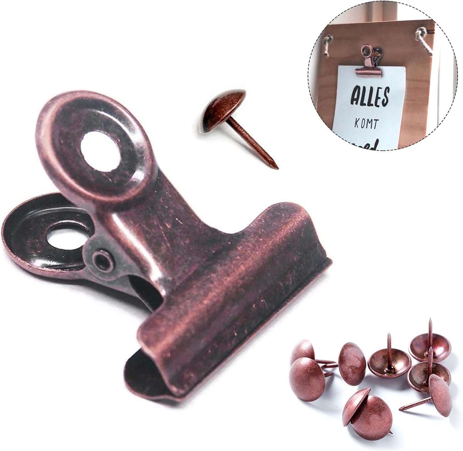 10 Pack Bulldog Clips with Push-pins for Corkboard,Metal Clips for Crafts, Metal Binder Clips for Pictures, Spring Paper Clamps for Office Documents (Copper,2inch)