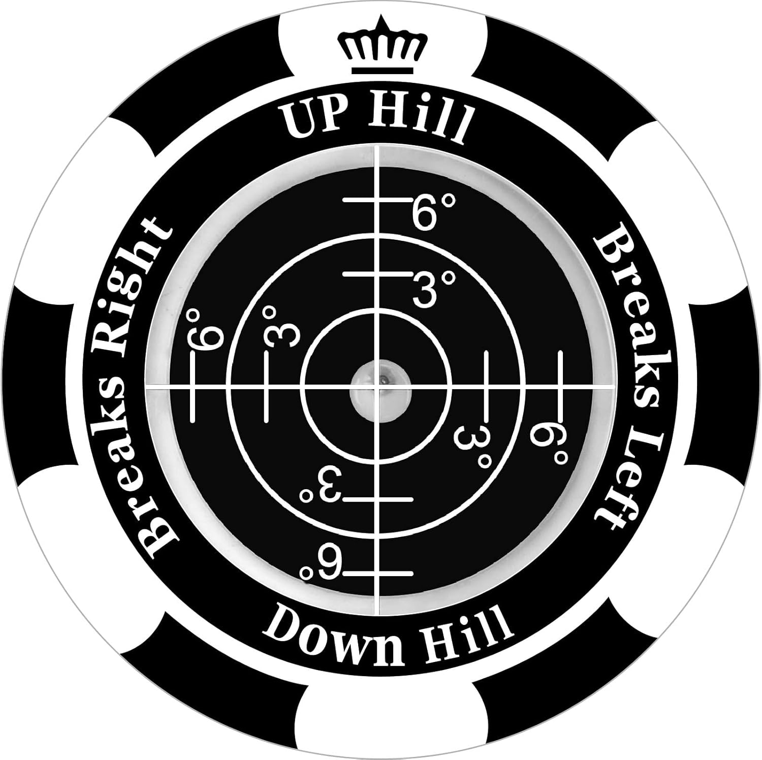 - Efficient Golf Ball Marker: With the bubble in the spirit level moving around the dial, you can instantly identify the slope of the green. Each quadrant on the dial represents the path your ball will take towards the hole, offering invaluable insights for your putt. The further from the center circle, the greater the slope or break.