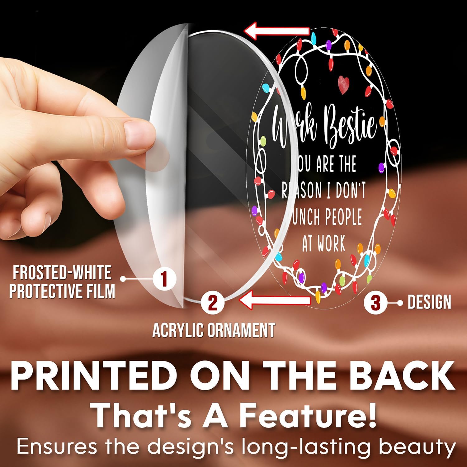 - WORK BESTIES GIFTS FOR WOMEN: Embrace the fun and uniqueness of your friendship with your coworker by gifting this humorous and personalized ornament during the Christmas season. Suitale as small gifts for coworkers, secret santa gifts for coworker women, office christmas gifts for coworkers, holiday gift for coworkers, going away gifts for coworkers women, appreciation gifts for coworkers, thank you gifts