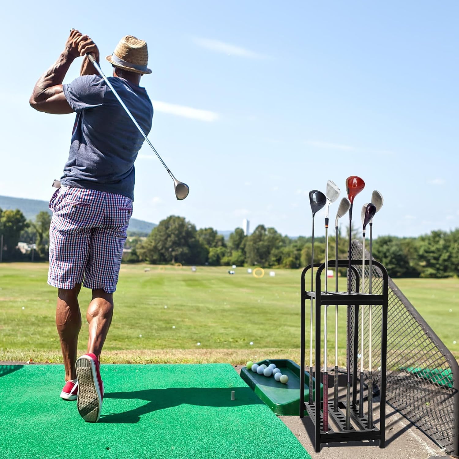 - Sleek Design and Black Color: the design of this golf club storage is black; Its modern and trendy design can effortlessly blend with your interior decor, creating a stylish golfing ambiance in your space