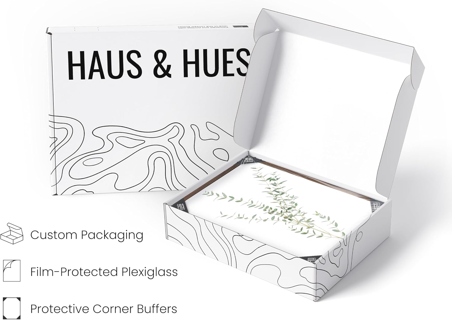 - PREMIUM WALL ART: To achieve the craftsmanship we’re known for, we use a printing technique on 14 pt semi-gloss paper. The paper used for our plant wall art with frame is sustainably sourced, and our inks are water-based. This flower leaves wall art is equipped with plexiglass covered by protective film and two metal hangers for horizontal or vertical hanging. The Eucalyptus wall decor is shipped in a durable box for protection in transit.
