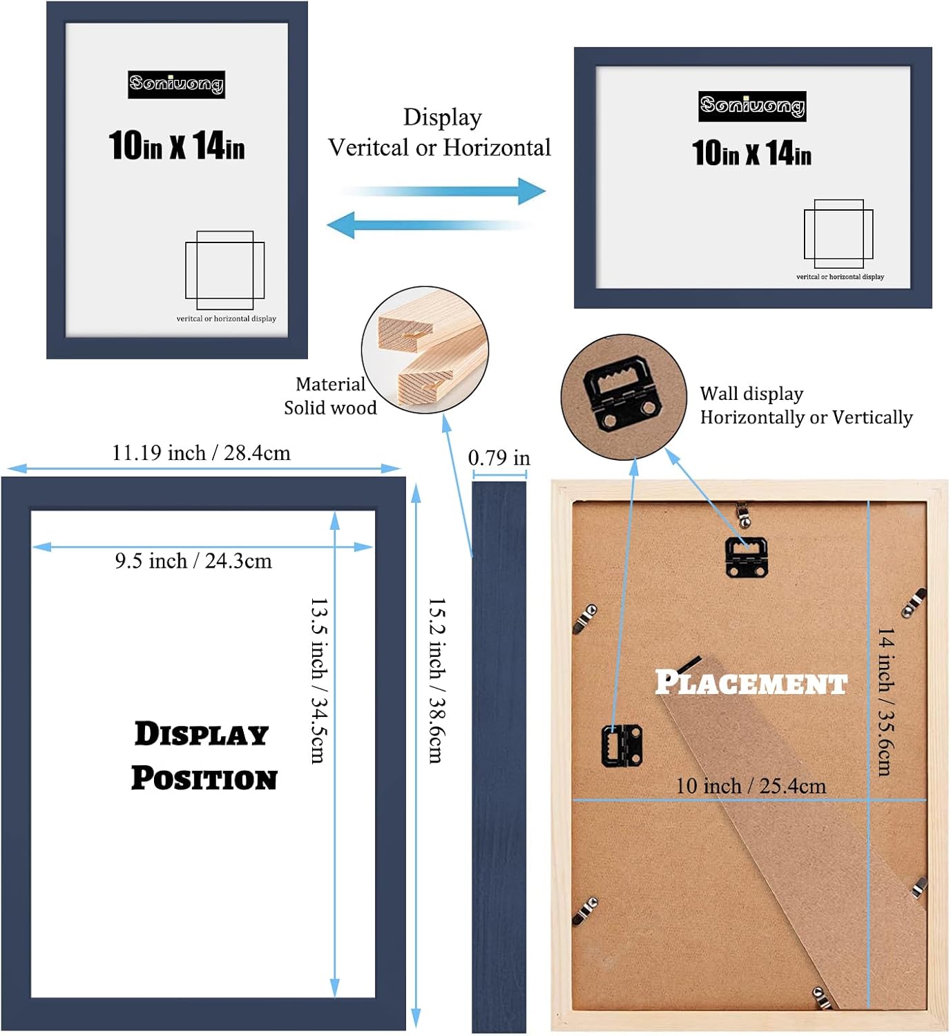 10x14 inch Wood Picture Frames for Wall Hanging,Diamond Painting Frames Rectangle Baby Scan Picture Frame for Family Walls Decoration,Anniversary,Wedding,Christmas,Halloween,Shower,Certificate (Jazz