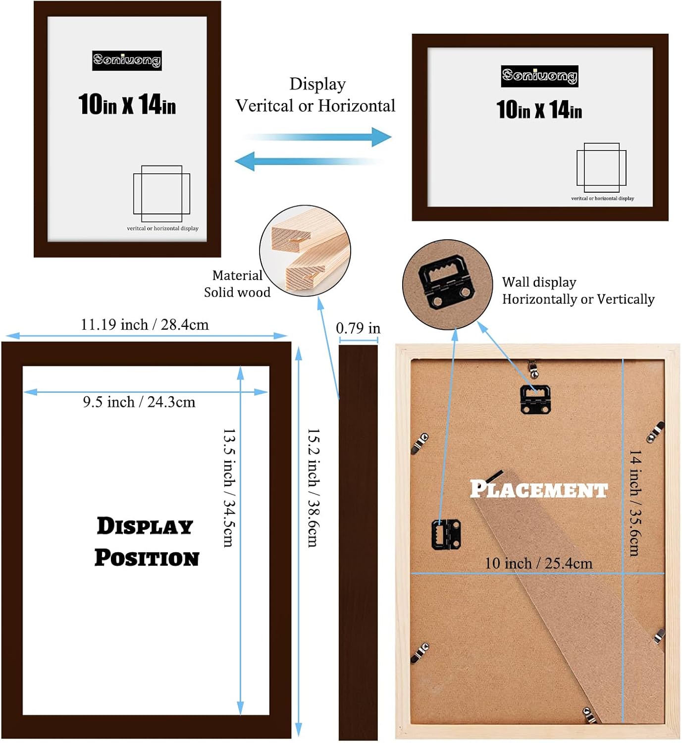 10x14 inch Wood Picture Frames for Wall Hanging,Diamond Painting Frames Rectangle Baby Scan Picture Frame for Family Walls Decoration,Anniversary,Wedding,Christmas,Halloween,Shower,Certificate (Brown)