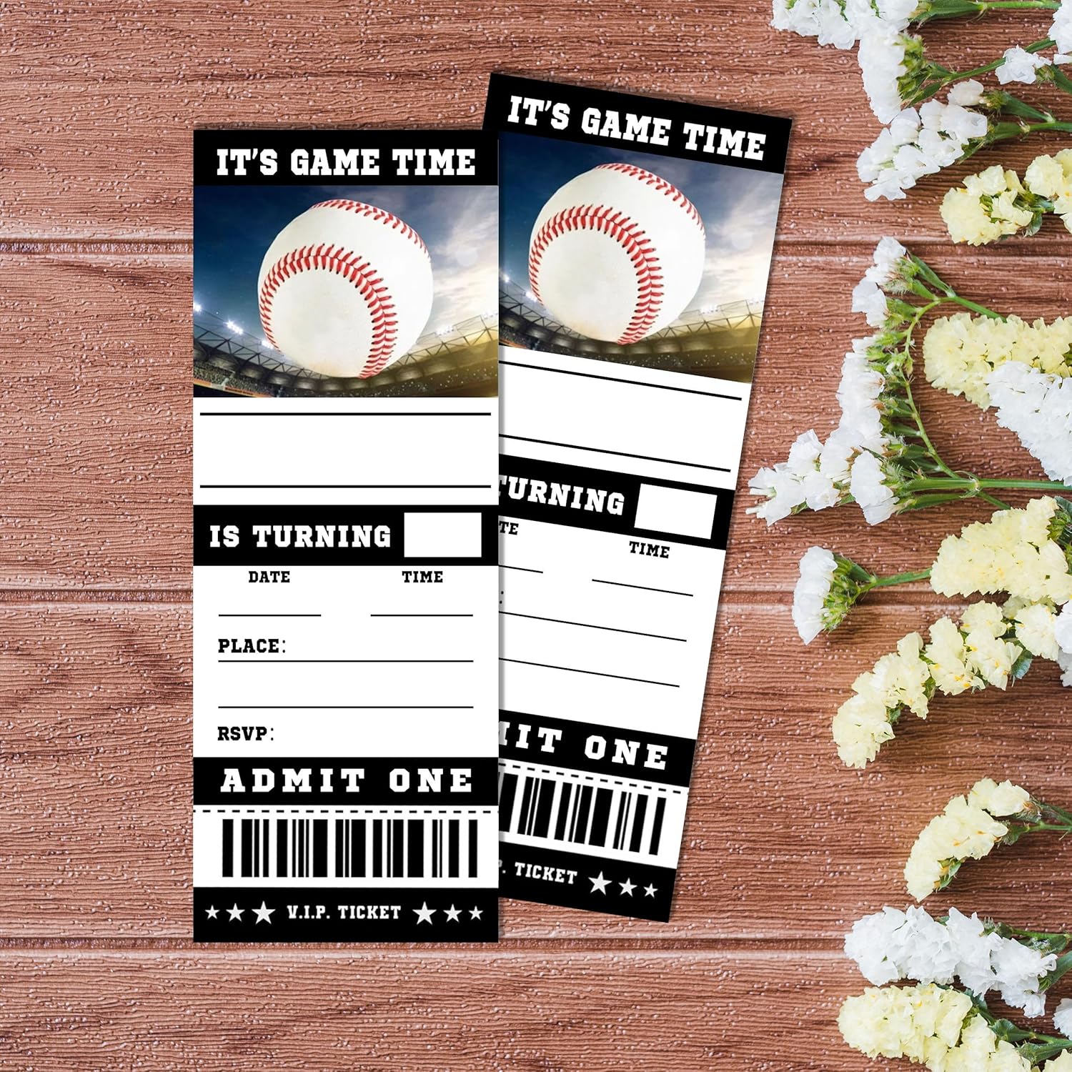 20 Baseball Game Ticket Invite Cards-Baseball Birthday Invitation with Envelopes for Teens kids Adults-Sports Birthday Cards-Party Favor & Supplies (3×8 inch)-A08