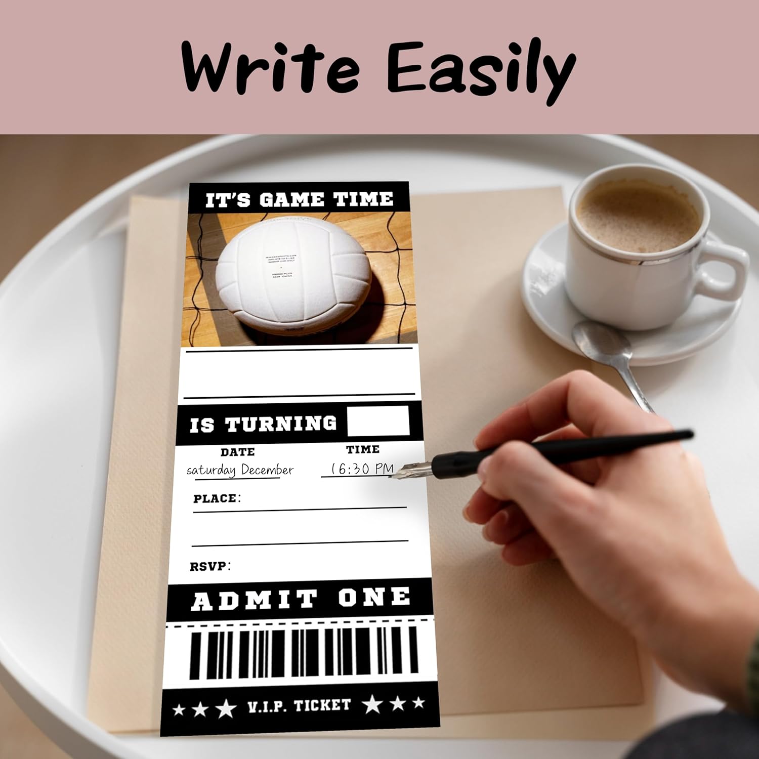 20 Volleyball Game Ticket Invite Cards-Volleyball Birthday Invitation with Envelopes for Teens kids Adults-Sports Birthday Cards-Party Favor & Supplies (3×8 inch)-A09
