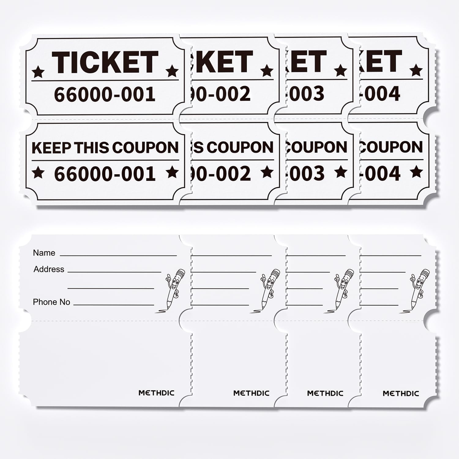 2000 Methdic White Raffle Tickets Double Roll, Ticket for Events, Entry, Class Reward, Fundraiser & Prizes