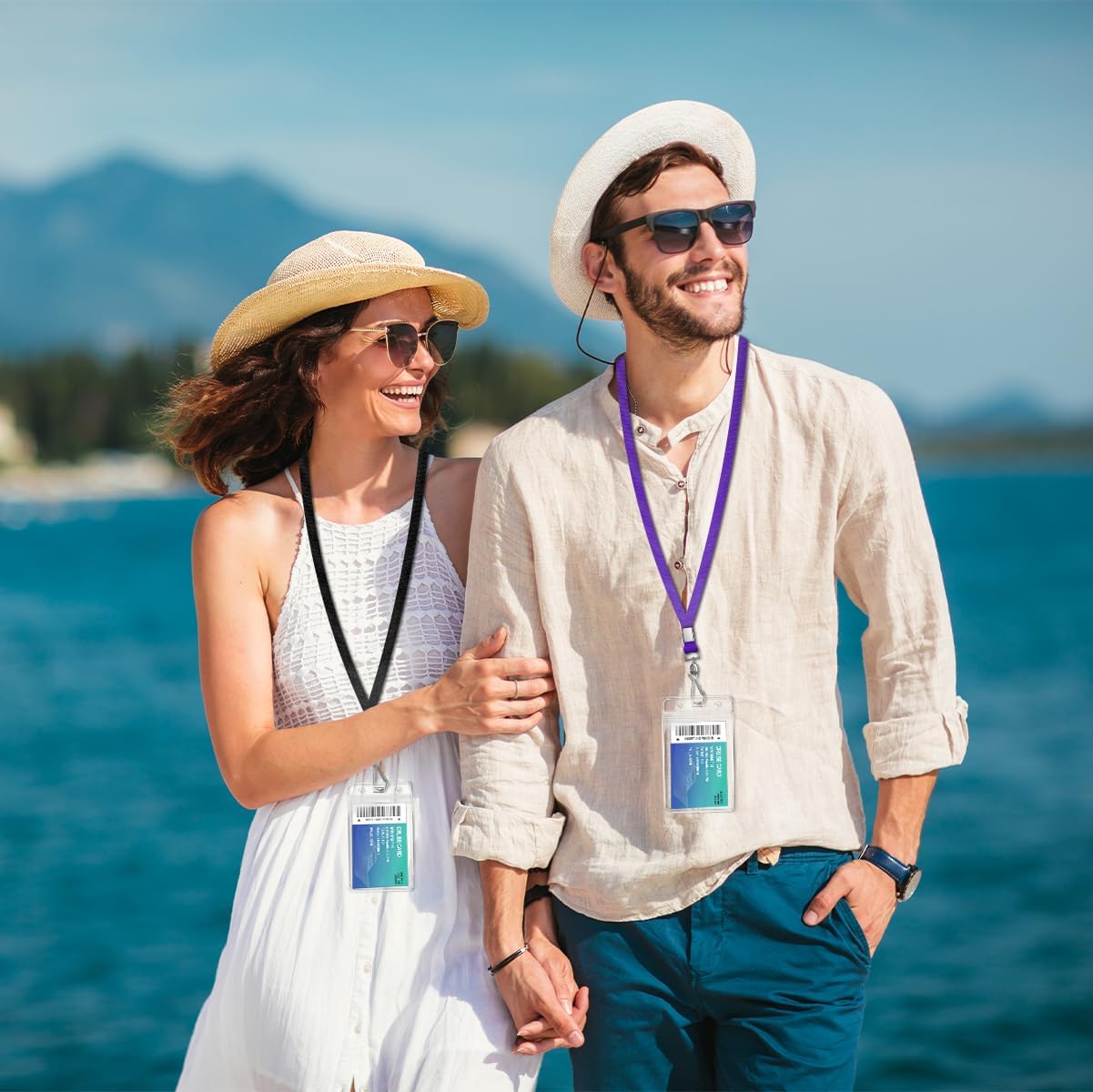 - Affordable Package: 20pcs vertical ID badge holders and 20pcs cruise lanyards, Includes 10 colors available - red, orange, yellow, sky blue, blue, purple, green, gray, navy blue, black. Assorted colors Durable Lanyard meet the needs of various occasions