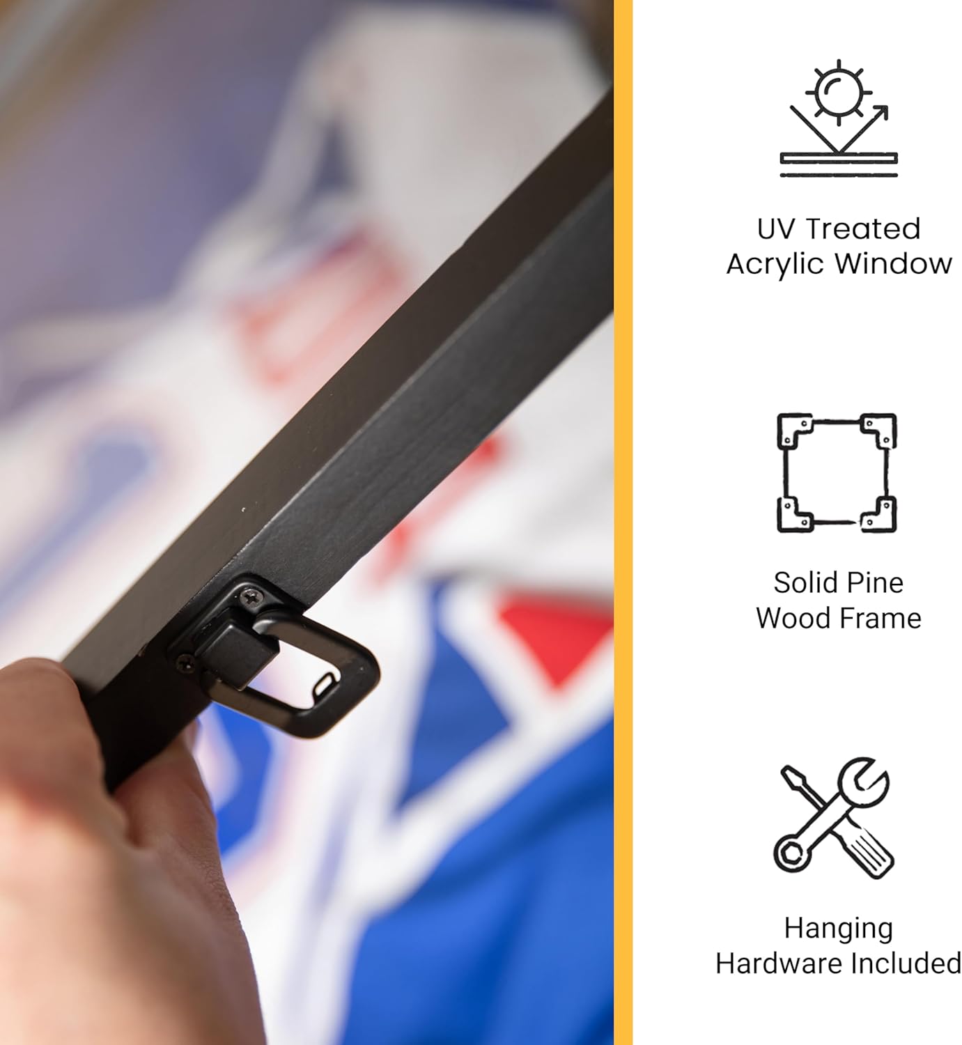 - Clear Acrylic Window: The jersey frame is designed with a clear acrylic window that provides a clear view of your collectibles. Its quality is comparable to a glass display case, offering a better view of your sports jersey or any other display items.