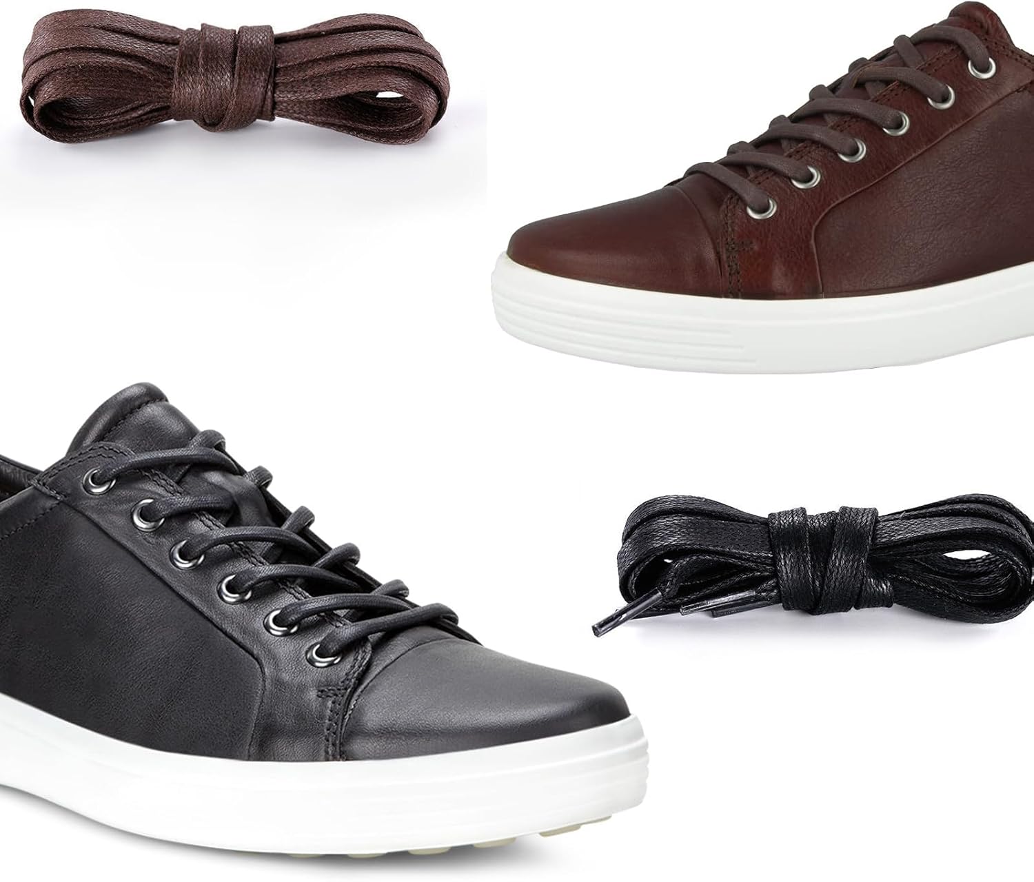 2 Pairs Waxed Flat Shoe Laces for ECCO Lace Up Leather Sneakers, 1/4"(6mm) Dress Cotton Shoelaces Replacement