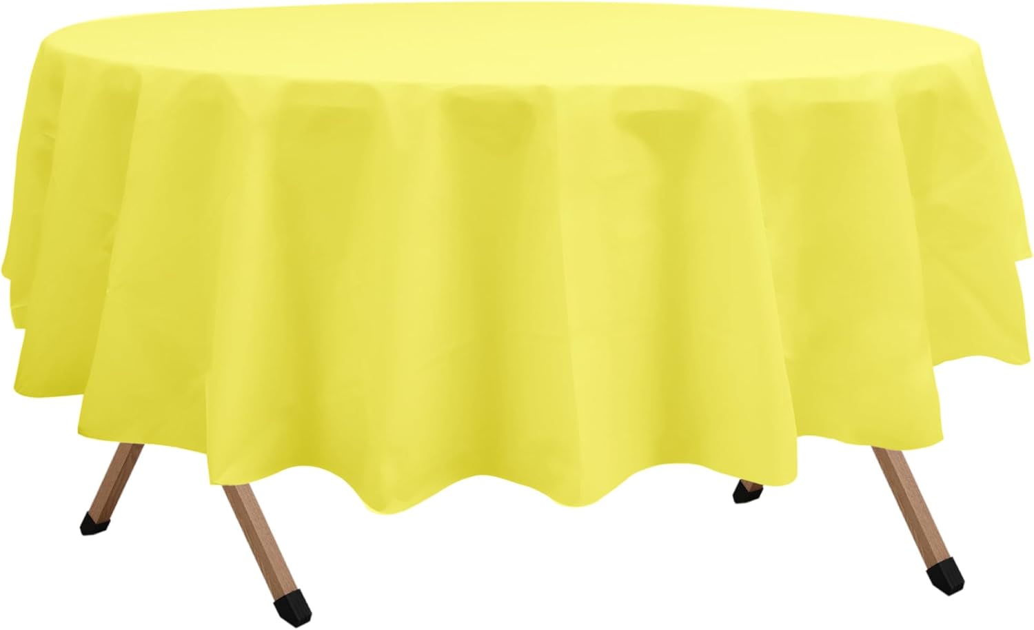2 Pack Light Yellow Premium Plastic Tablecloth Round 84 Inches Reusable Pastel Yellow Decorative Table Cover for Dining, Wedding, Party, Indoor and Outdoor use