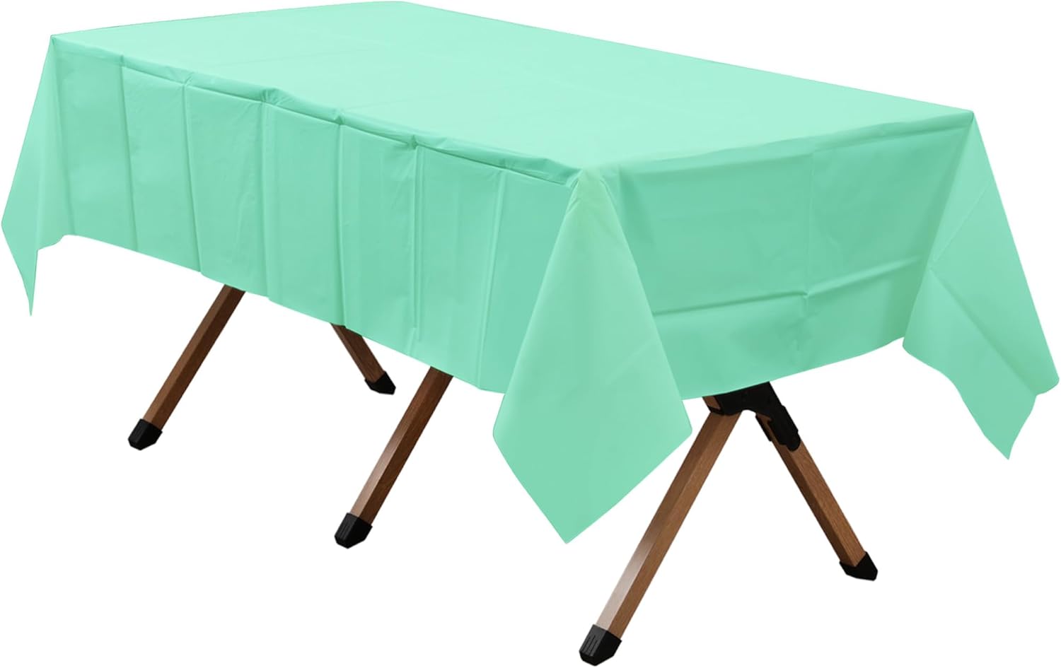 2 Pack Fresh Mint Premium Plastic Tablecloth Rectangle 54 x 108 Inches Reusable Mint Green Decorative Table Cover for Dining, Wedding, Party, Indoor and Outdoor use