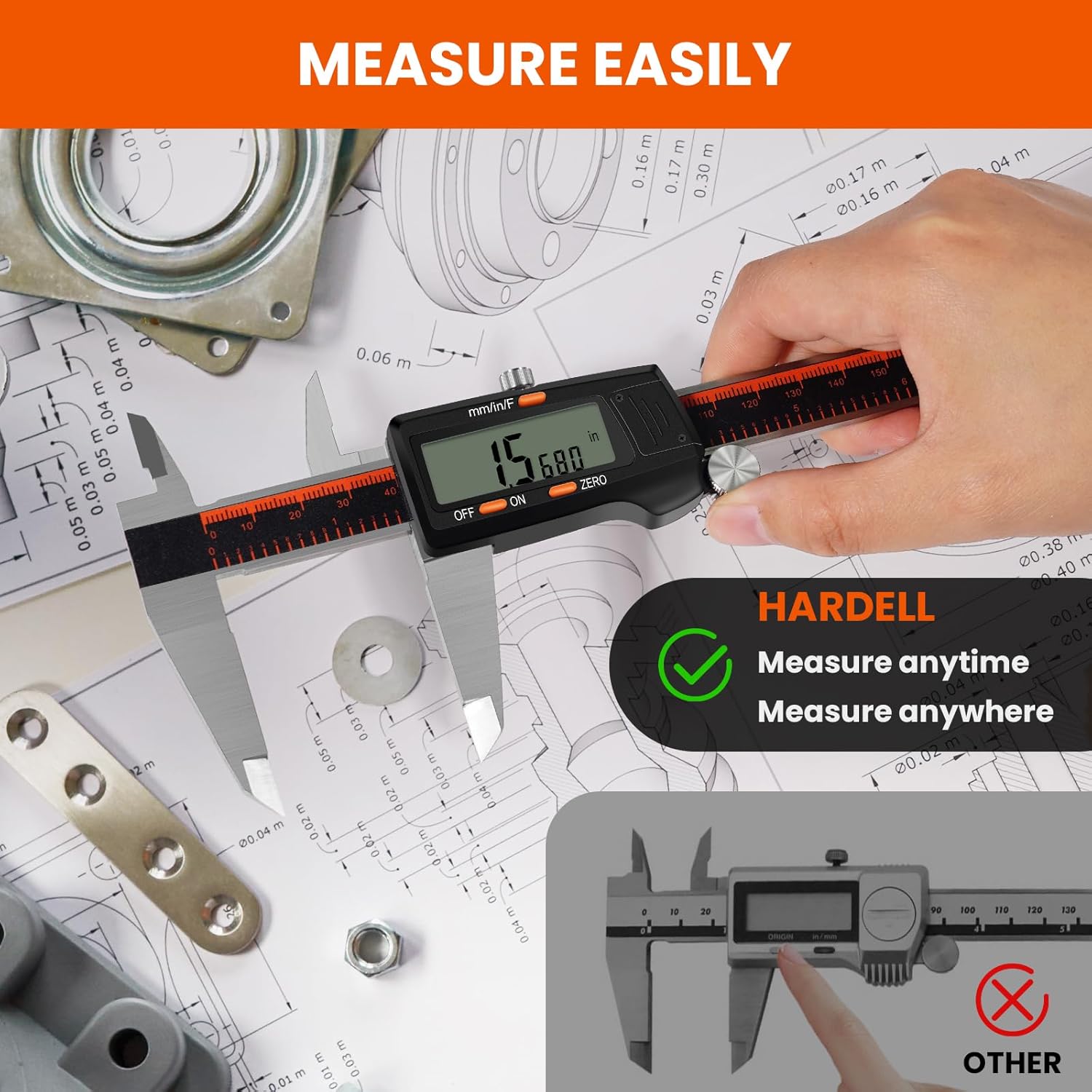 - [HIGH ACCURACY]-HARDELL digital micrometer has a measuring range of 0-200 mm/0-8 ". Resolution is 0.01 mm/0.0005". Accuracy is ±0.02mm/0.001 ". The knurled thumb wheel design ensures smooth measuring operation. This design prevents slipping or getting stuck. Precision and accurate digital vernier calipers are suitable for DIY, household, and 3D printing