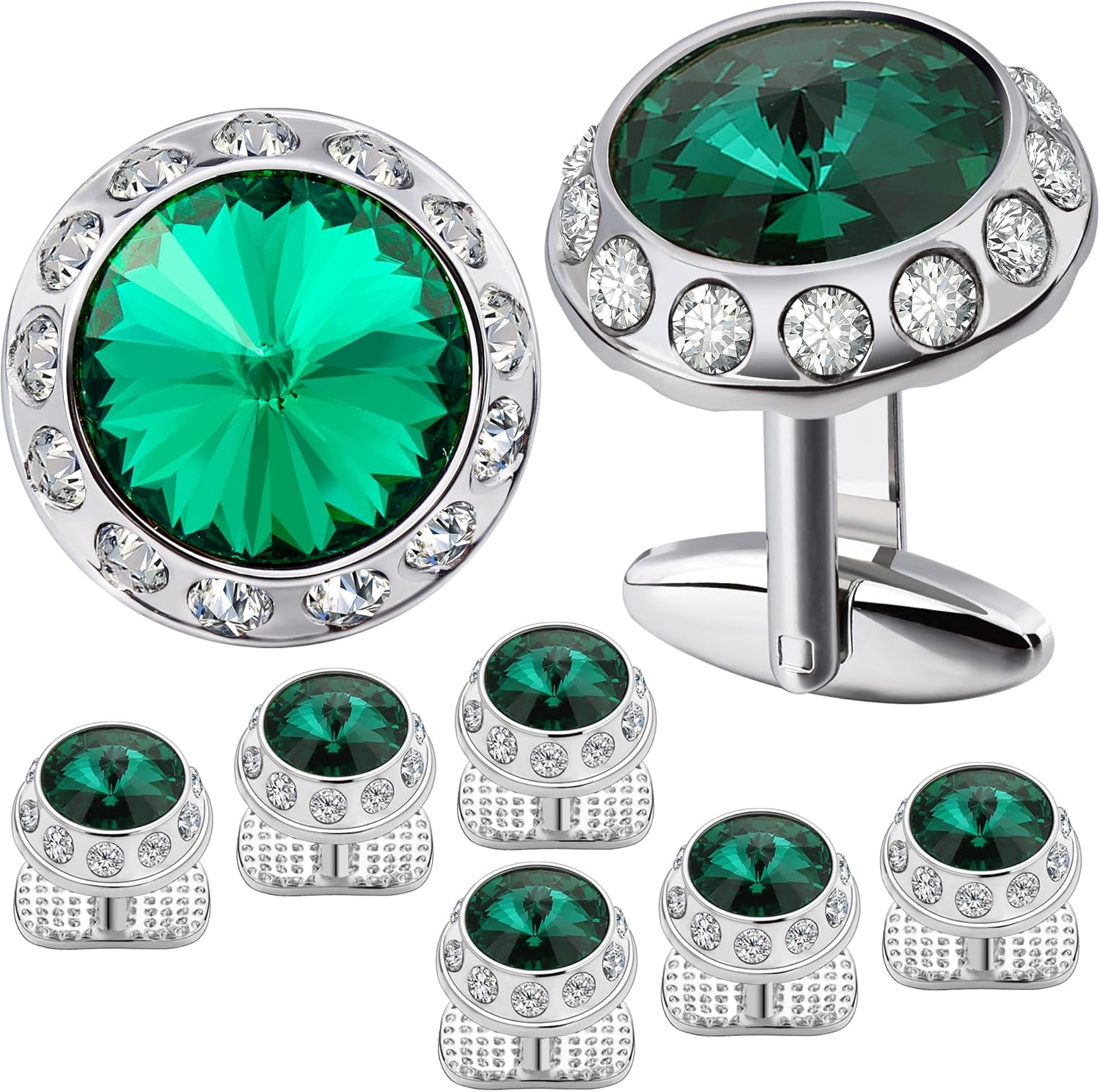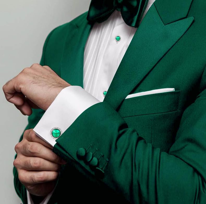 - [Birthstone Cufflinks and Studs for Men] The May cufflinks and tuxedo studs symbolizes new life and rebirth as a gift for your husband, brother, boyfriend, other male friends or yourself.Emerald jewelry show him your blessings as hope color.