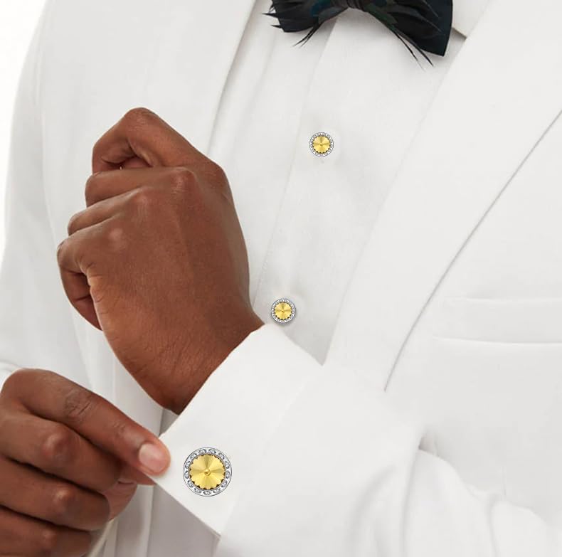 - 【Crystal tuxedo cufflinks and studs】HAWSON tuxedo cufflinks and studs complement any suit and Shirt, not only with classic white, black, blue and red clothes, but also with brown, pink and green accessories (neckties, necklaces, brooches, etc.) necessary for weddings.