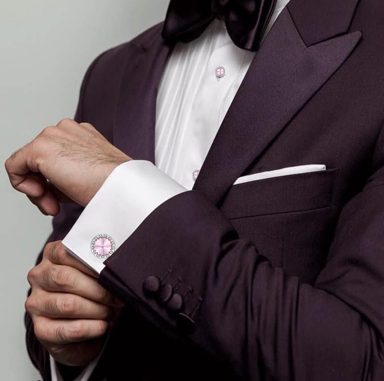 - 【Birthstone Cufflinks and Studs for Men】The October cufflinks and tuxedo studs mens symbolize hope and creativity as a gift for your husband, brother, boyfriend,other male friend,or yourself.Pink jewellery show him best wishes as vitality.