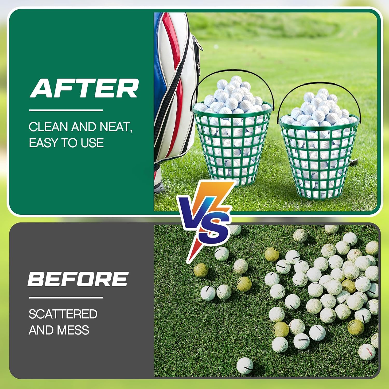 - Packing List: this golf ball basket provide versatility and convenience, offering the ideal training tool for golf enthusiasts; The set includes 2 baskets, each capable of holding up to an impressive 100 balls (please note, golf balls are not included); This plastic ball container is an exceptional tool for enhancing your golf practice sessions