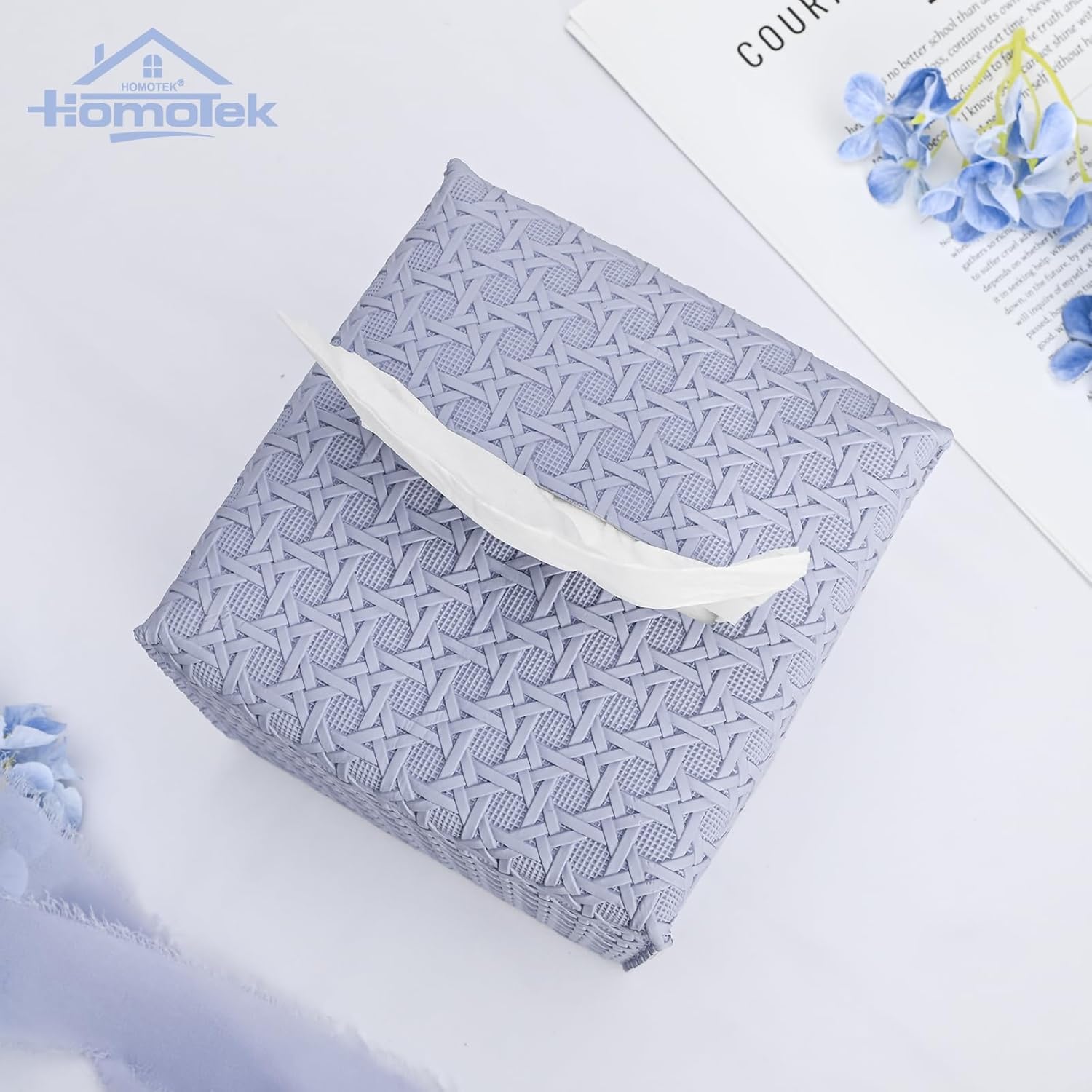 HOMOTEK 2 Pack Tissue Box Cover, Square PU Leather Tissue Holder, Decorative Facial Tissue Cube Paper Organizer Dispenser for Bathroom, Night Stands, Desk, Car 5X5X5'' - Rattan Weave,Lavenderpurple