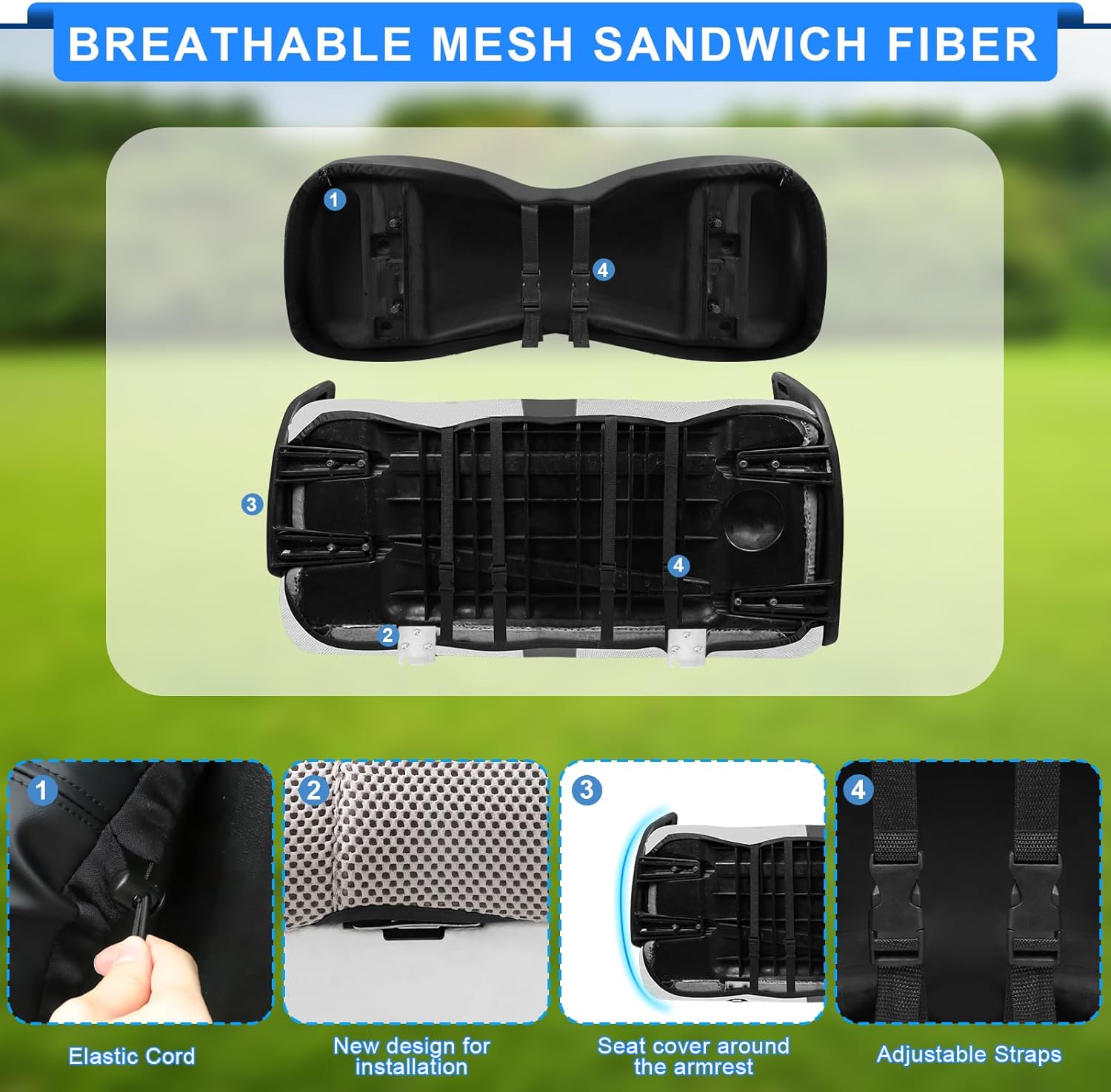 - Stylish Dessign: This upgraded yamaha g29 golf cart seat cover combines fabric cloth with artificial leather, featuring a distinctive mesh sandwich design. Full wrap-around design make the seat cover fit yamaha g29 original front seat and backrest , giving your golf cart an individual look