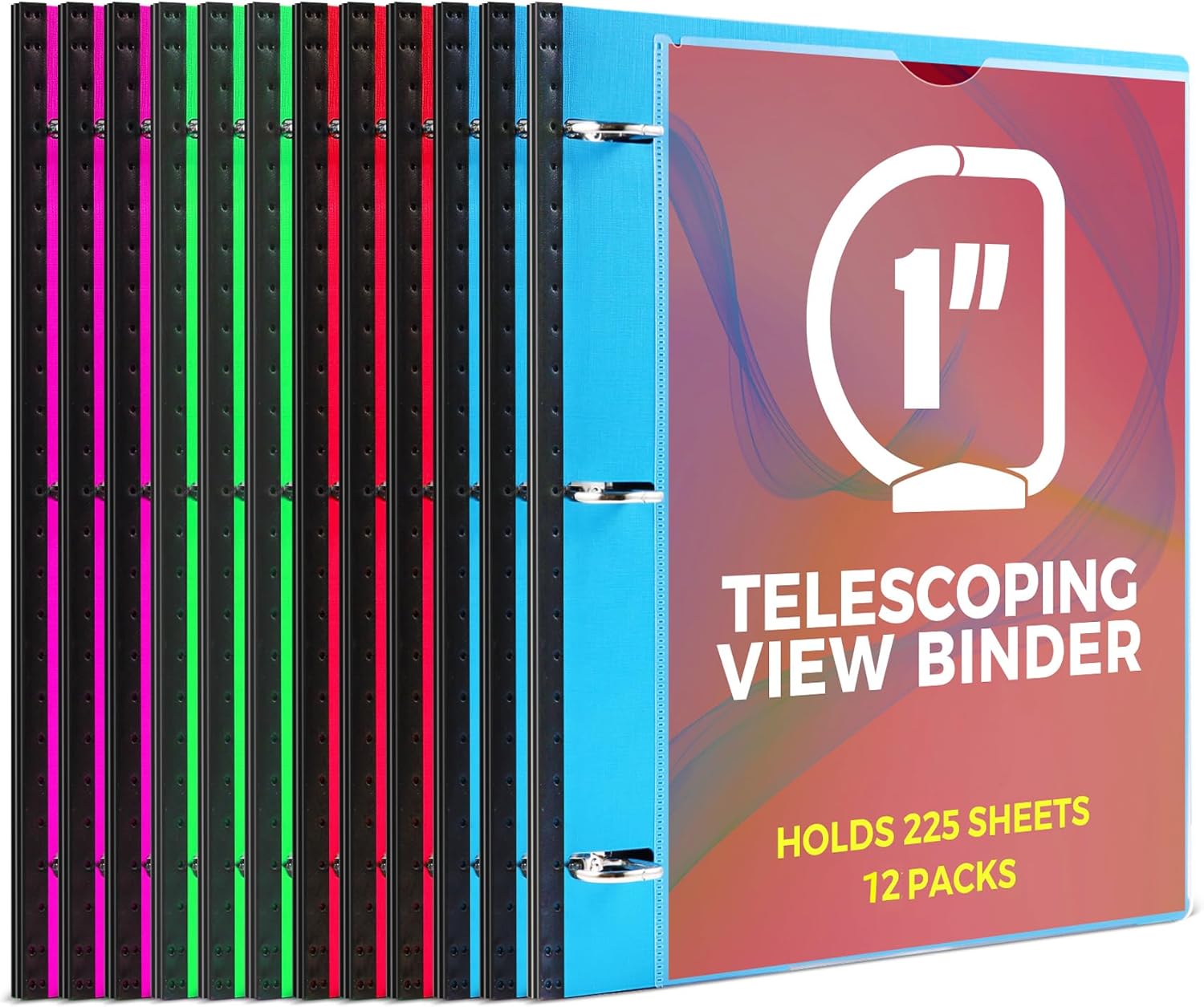 1 Inch Telescoping 3 Ring Binder-12PCS, Flexible Binder with Customized Front Cover, Holds 225 Sheets, School Office Supplies, 4 Colors
