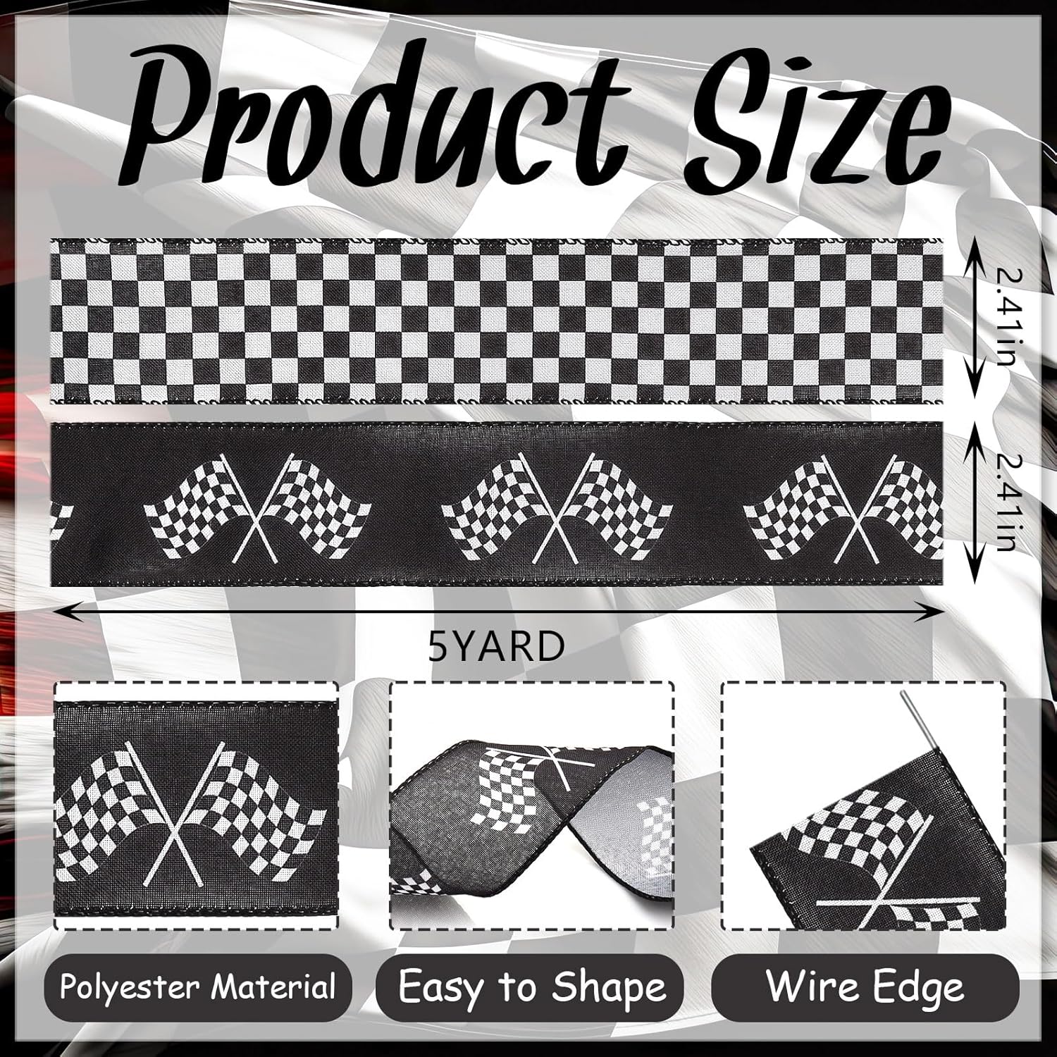 - 【SIZE】You will receive 2 rolls of Racing Car Theme Printed Ribbon, each Black White Checkered Printed Ribbon is approximately 2.5 inches wide and 5 yards long. In total, you will get 10 yards of Buffalo Plaid Ribbons, which is sufficient to meet your decoration needs and gift-wrapping purposes.