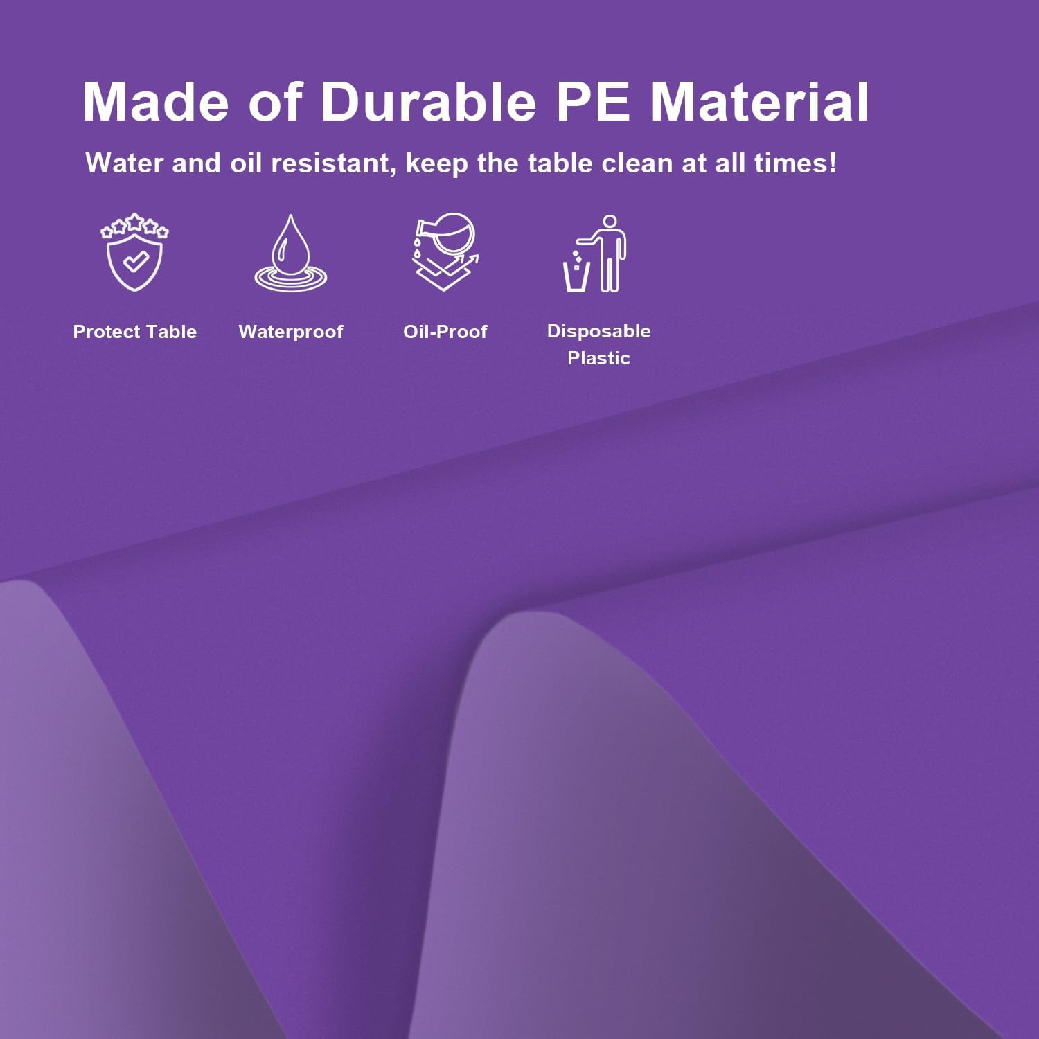 - 【Waterproof and Stain Resistant】The disposable dark purple tablecloth is made of plastic material, it is waterproof and stain resistant. If you're tired of washing all your tablecloths, dark purple plastic table cloths for parties disposable are a great solution! Simply roll them up and discard them after the party. Save yourself the hassle of clearing the table and allow you to spend more time enjoying the party with your family and friends