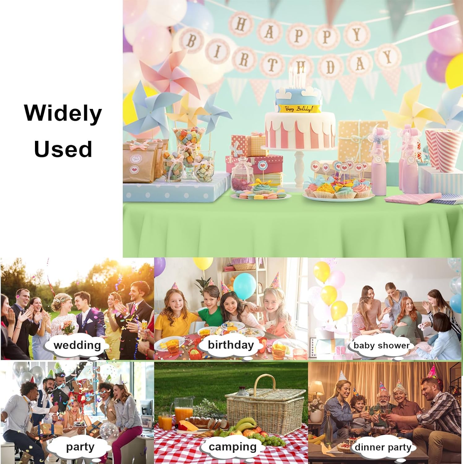 - 【Enjoy Your Party】The sage green plastic table cloths for parties disposable features a sage green theme to add a fun pop of color to every of your gatherings. Impress your guests throughout the party. When the party is over, you can spend more time with family or friends and less time cleaning up. A disposable sage green tablecloth is a beautiful addition to any party or event