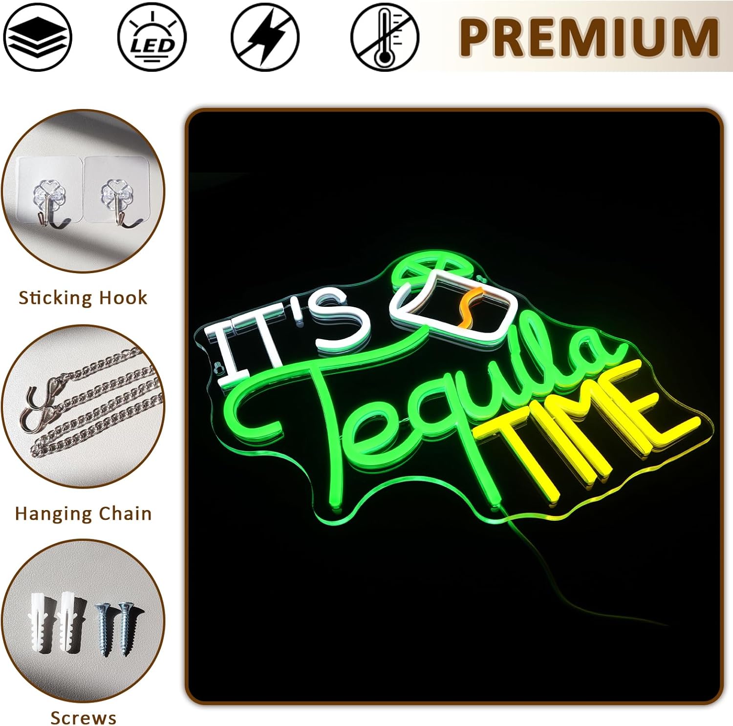 - Eye-Catching Neon Sign: Tequila neon sign combined It's Tequila Time words and Tequila shape is eye-catching. Led Sign is the perfect neon bar sign to attract customers to your bar or add a pop of color to your home decor