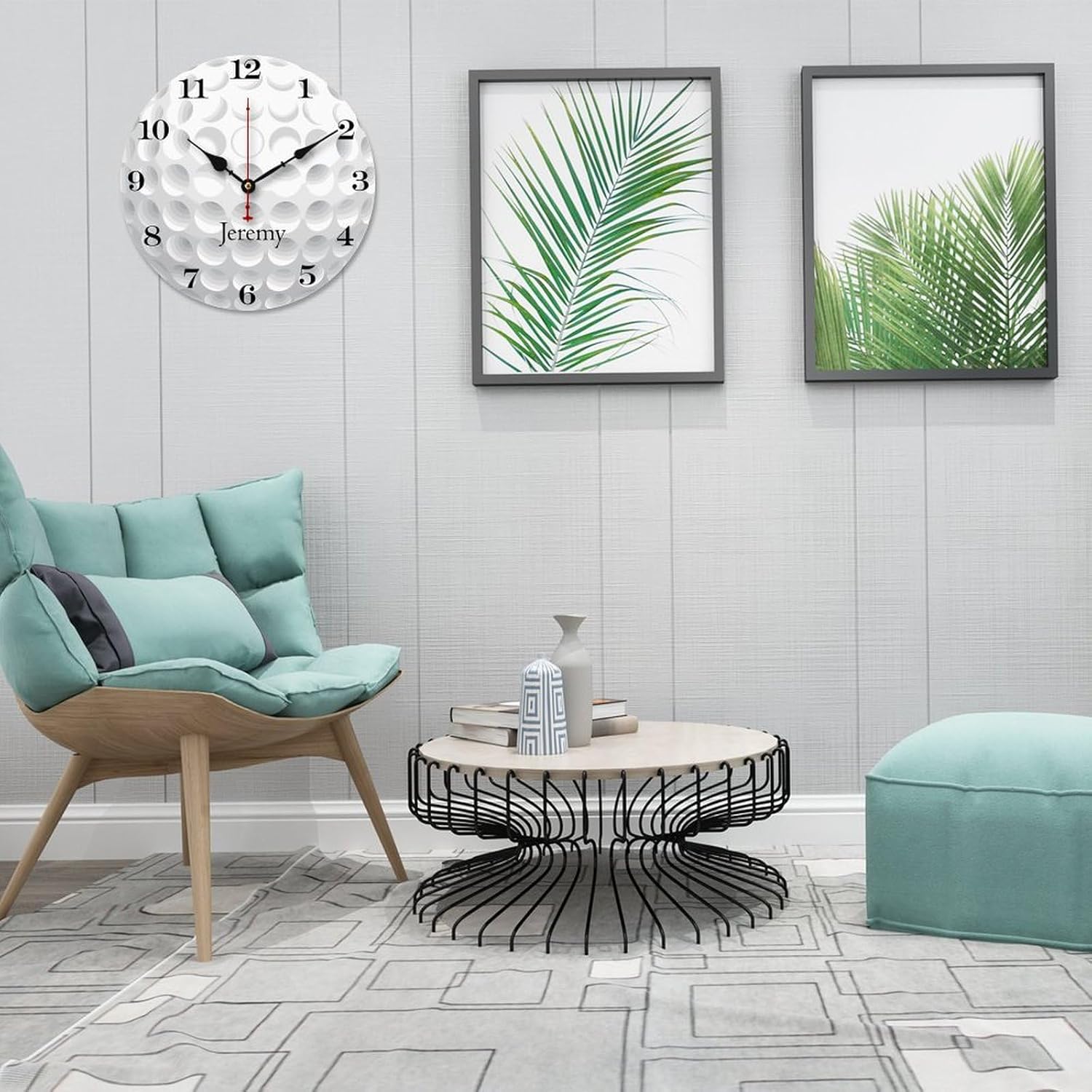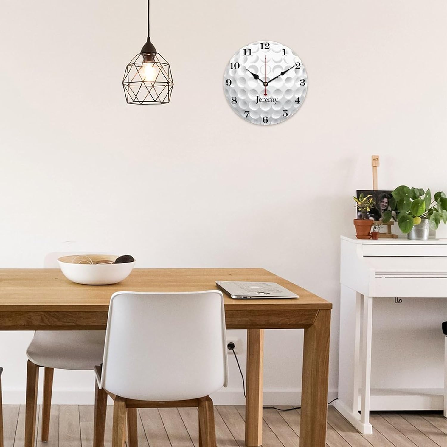 12 inch Golf Ball Personalized Name Wall Clocks Battery Operated for Kids Bedrooms Nursery School Playroom Decor,Custom Kids Name Wall Clock,Golf Ball Decor Wood Round Clock Silent for Children Room