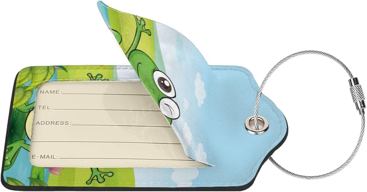 - 【A Combination Set 】: Each Package Comes With 2 Pack Unique Smiling Frogs Logo Luggage Tags. Our Cute Luggage Tags Are Made of High PU Quality Leather, Soft And Comfortable, And Can Be Bent, The Sides Are Stitched With Silk Thread, Very And Suitable for Long-Term Repeated Use.Size Is “(4.6 Inch 11.6cm)X (2.7 Inch 7.3cm)”.