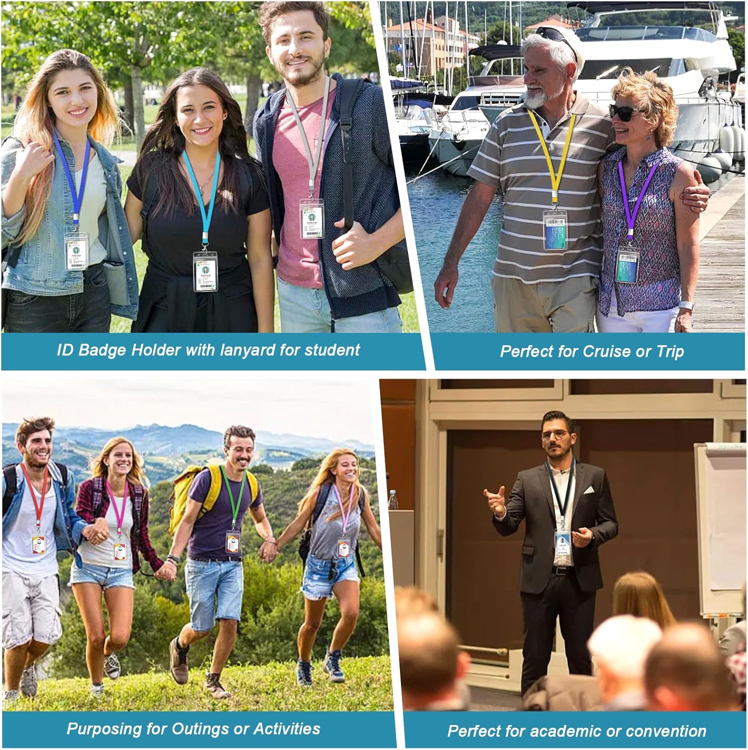 - Package Content: Includes 12pcs ID badge holders and 12pcs bright colored cruise lanyards in red, orange, yellow, pink, purple, sky blue, dark blue, green, gray, black. A variety of colors and sufficient quantities perfectly suited for business meetings, travel, office supplies