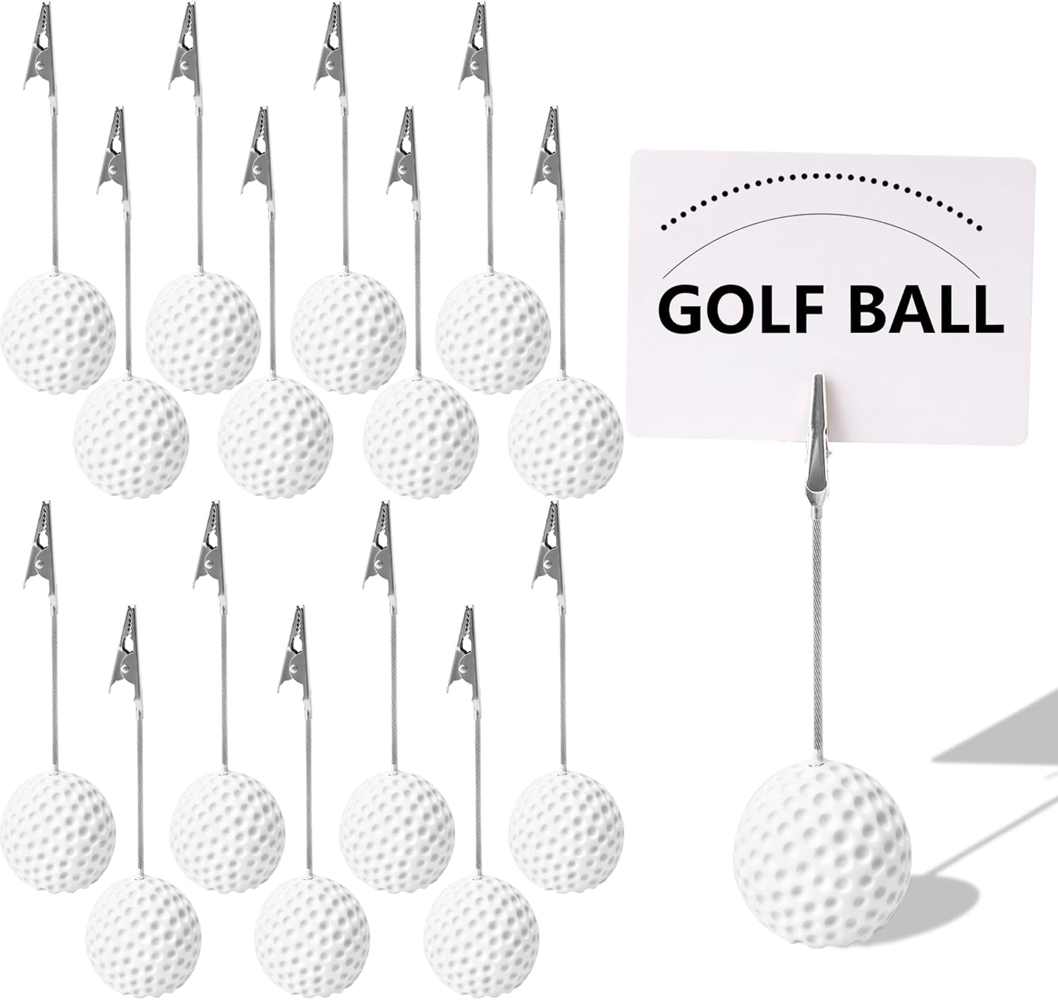 - 【Widely Use】: This creative golfball desk stand serve as memo holders, table numbers, table photos, wedding venue card stands, party table numbers, office memo clips, table decor, and Christmas table card stands; They are suitable for sporting events, weddings, offices, anniversary parties, home decor, and more