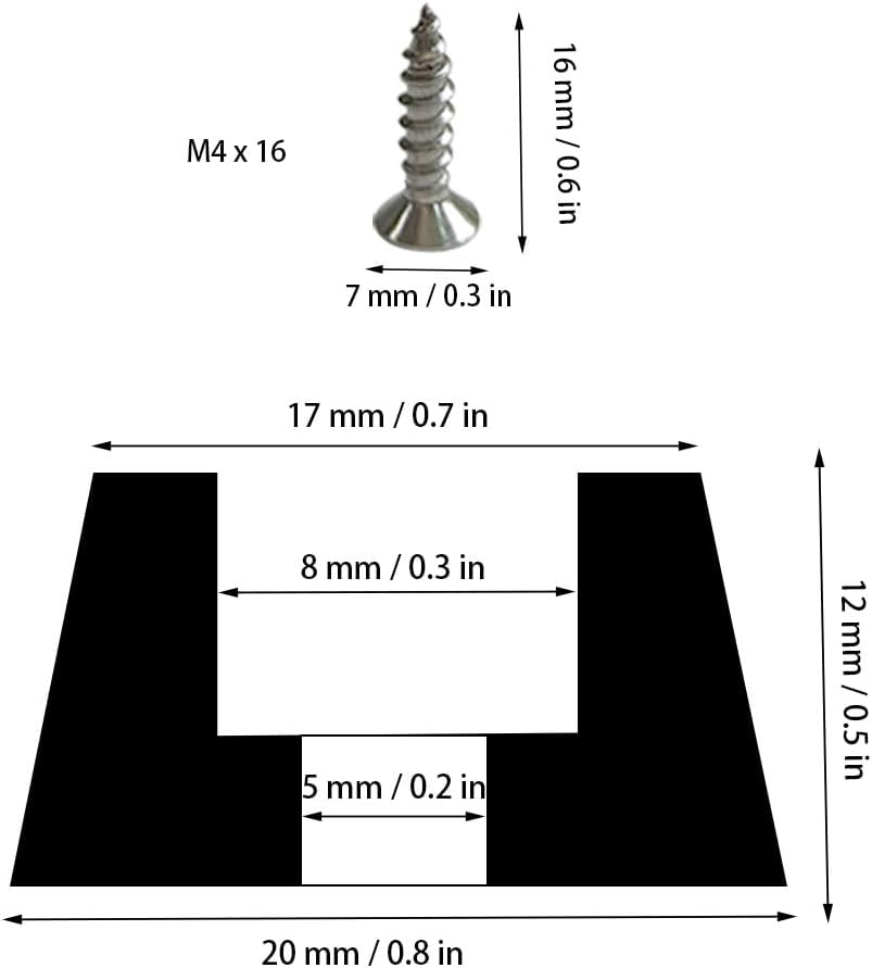 - Package Includes: You will receive 20 pcs screw on rubber feet and 20 pcs 304 Stainless steel screws. screw on rubber feet for cutting board size 0.78 in bottom width x 0.67 in top width x 0.51 in tall (20 mm x 17 mm x 13 mm) transparent plastic box packaged, for storage, neat and convenient.