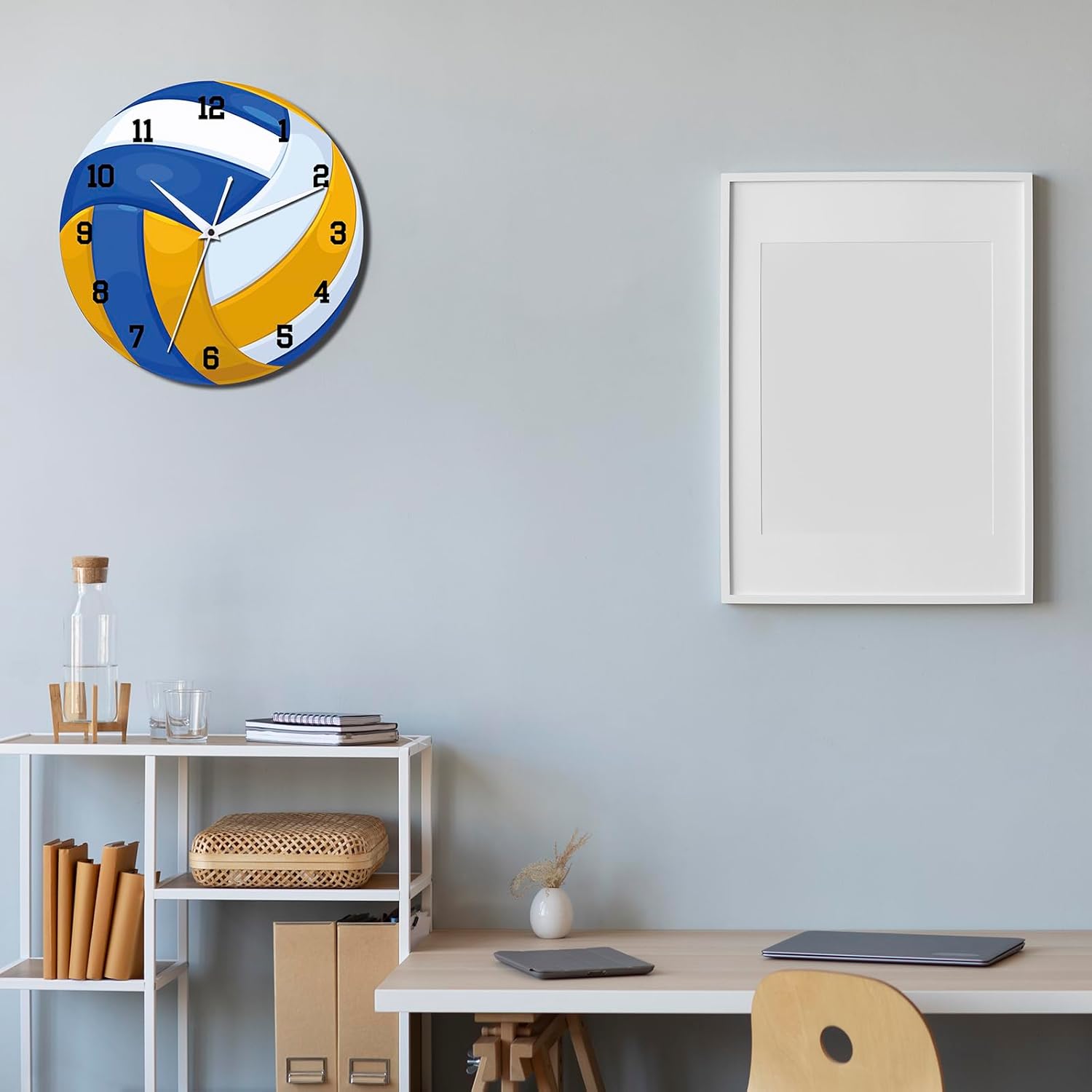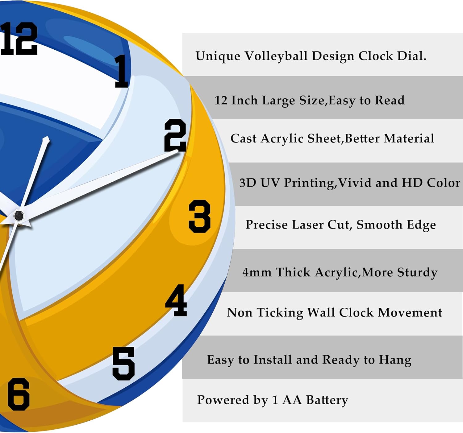 12 Inch Sports Wall Clocks with Silent Clock Movement and Battery Operated, Great Decor for Bedroom, Living Room or Classroom (Volleyball Wall Clock)