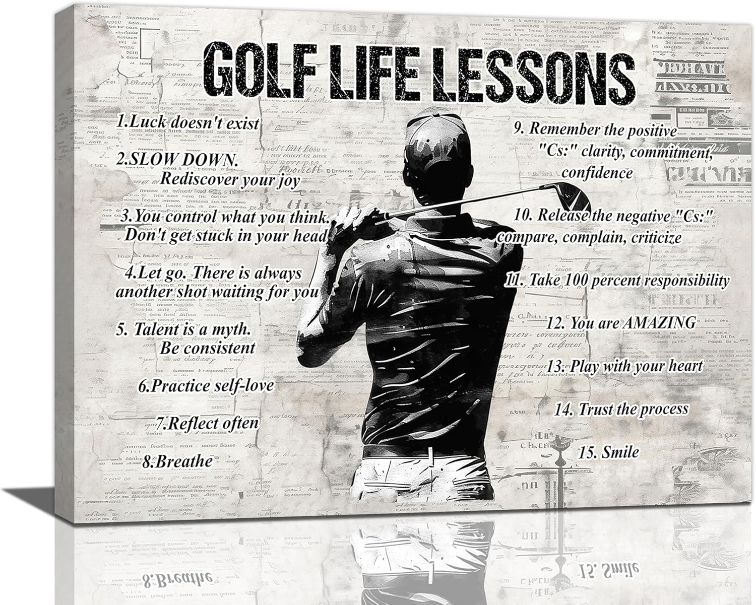 Gyeong Golf Sports Wall Art Golf Life Lessons Wall Decor Golf Sign Retro Poster Boy Men Room Motivational Decorations Canvas Print Painting Artwork for Bedroom Bathroom Living Room 16"x12"