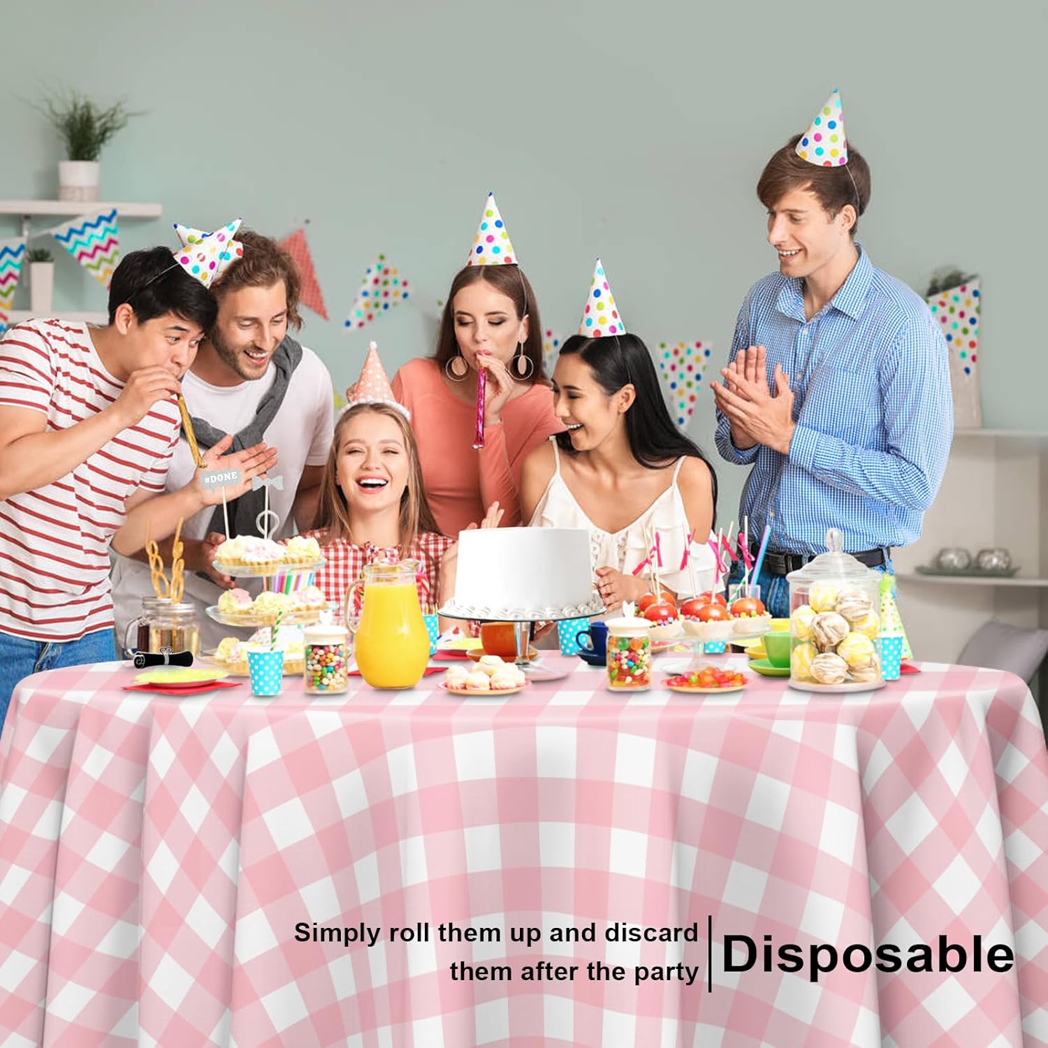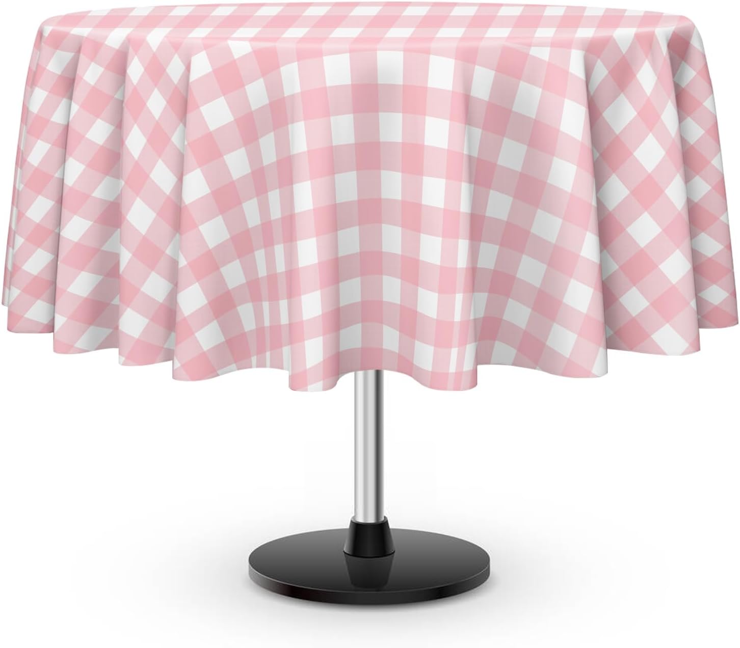 - 【Durable Plastic Tablecloths】Our round disposable pink and white checkered tablecloths are made of premium durable PE material, creating a waterproof barrier that keeps your table fully protected at all times. The disposable pink and white checkered tablecloth measures 84 x 84 inches, covers an 8-foot table, and can be cut to size. Our package includes a 12-pack of pink and white gingham plastic tablecloths, and you'll have enough covers for even big events or multiple occasions