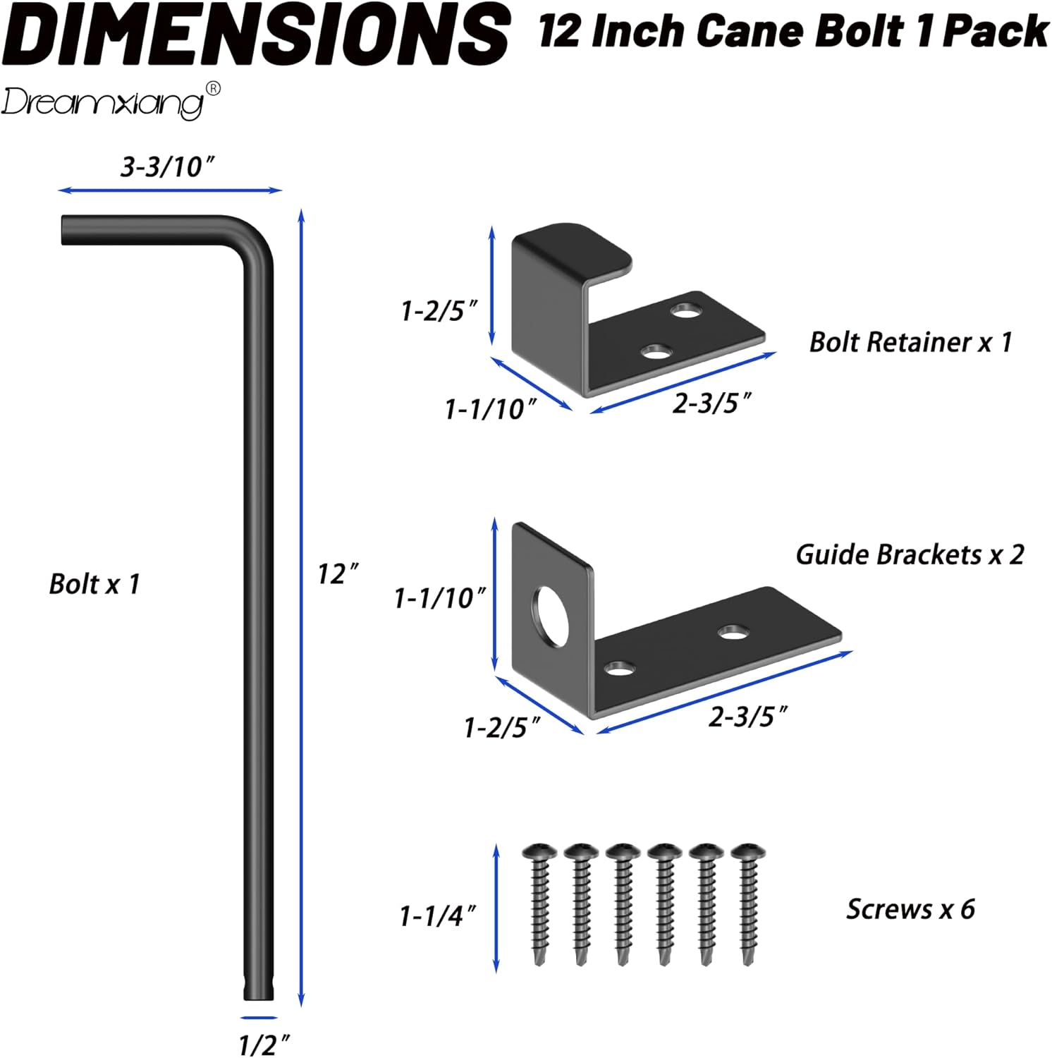 - 【EASY TO INSTALL】Dreamxiang heavy duty gate drop rod includes one sugarcane bolt, three fixed metal pieces, six screws. Measure the installation position, fix the accessories, punch the holes, and you can use it.
