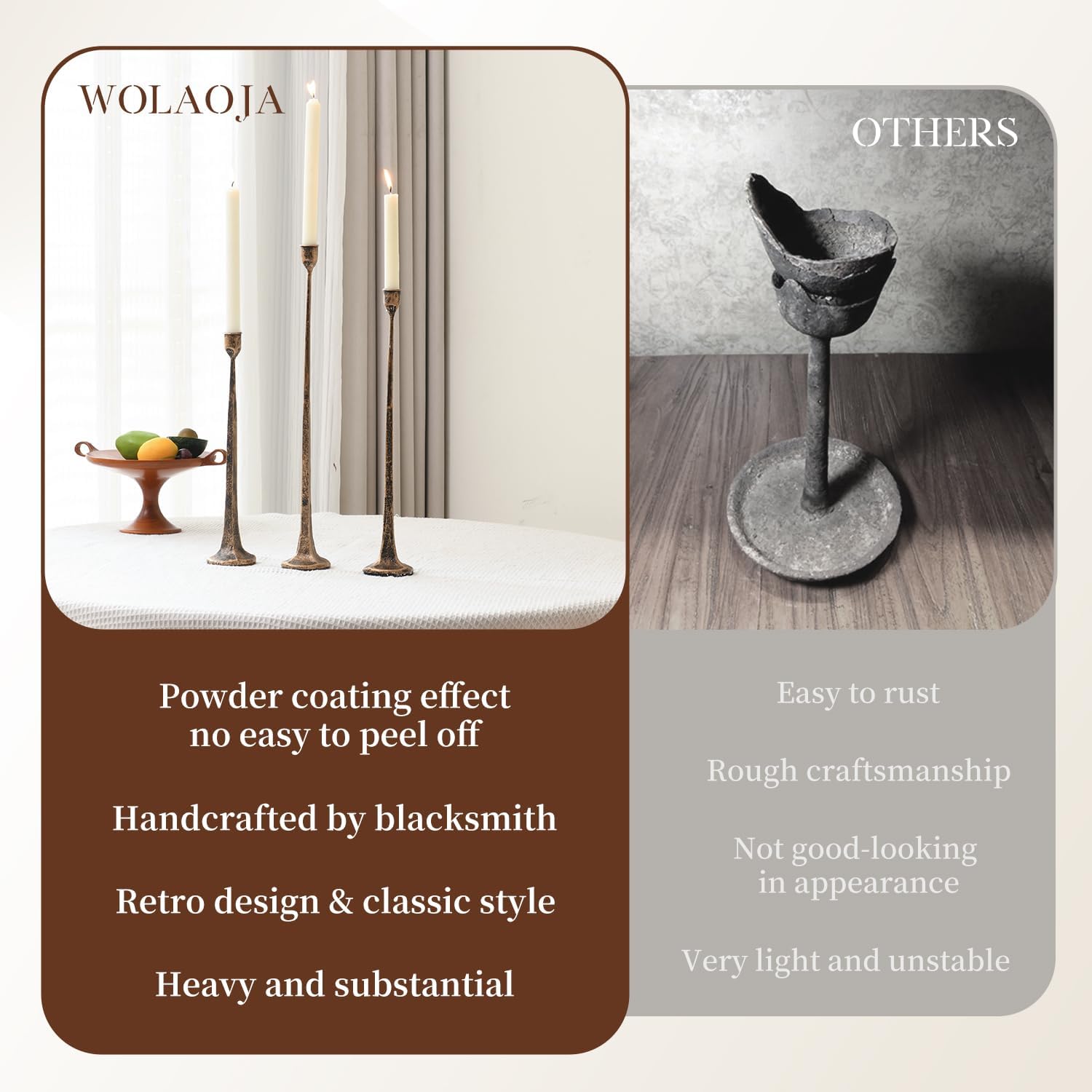 - TAPER CANDLE HOLDER -Retro with modern,traditionary style , different height candlesticks, the visual effect of the high and low undulating candlelight gives you a wonderful feeling.The candle holders cup is designed as a red wine glass, heavy round base, the black candlestick holders firm and stable. Made of high-quality metal materials, anti rust and anti-corrosion, shiny luster .