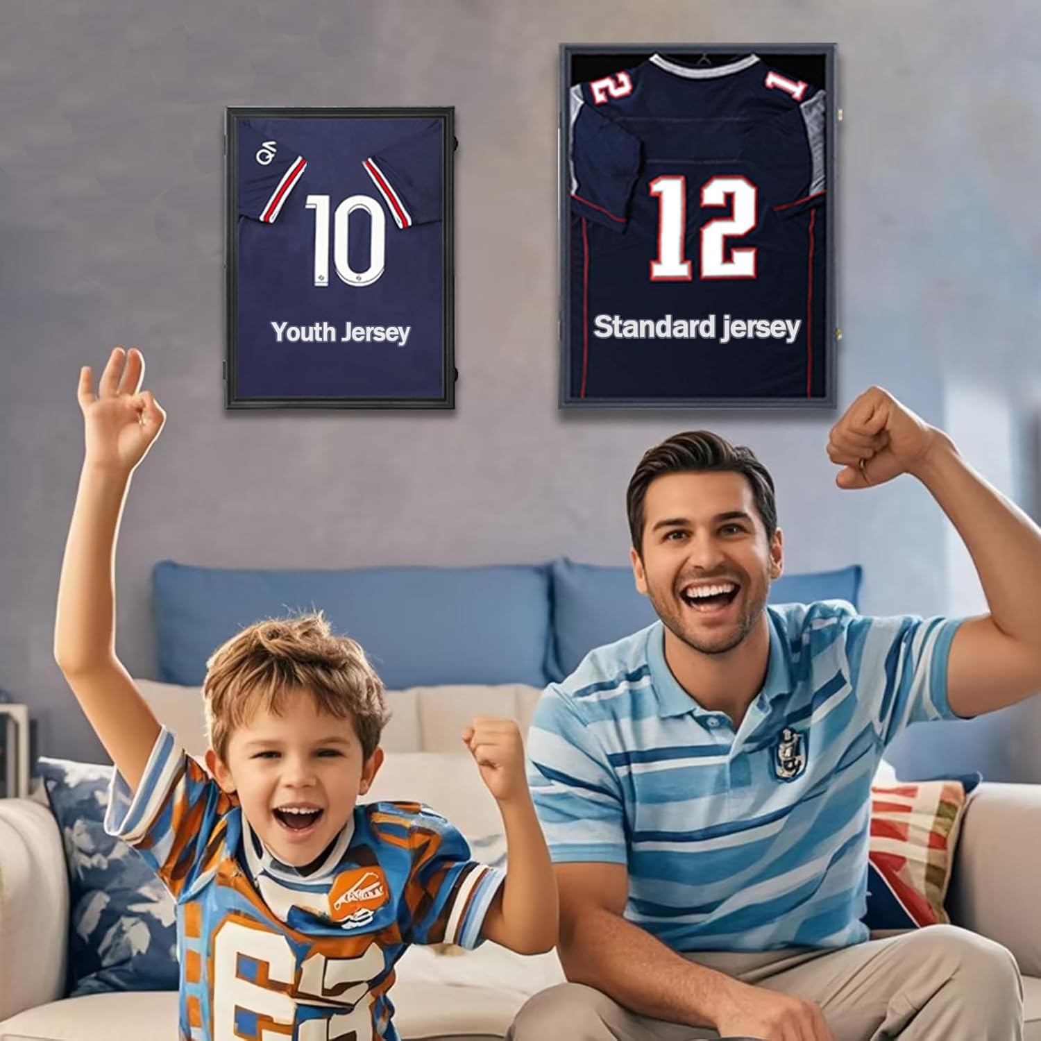 - SUITABLE FOR YOUTH SPORTS JERSEYS - IHEIPYE kids Jersey Frame, measuring 23.62" x 17.71", fits most youth sports jerseys such as those used in baseball, basketball, football, soccer, and hockey. It's an graet gift for sports fans and kids,can also be used as a shadow box to display uniforms, graduation memorabilia, and other cherished memories.