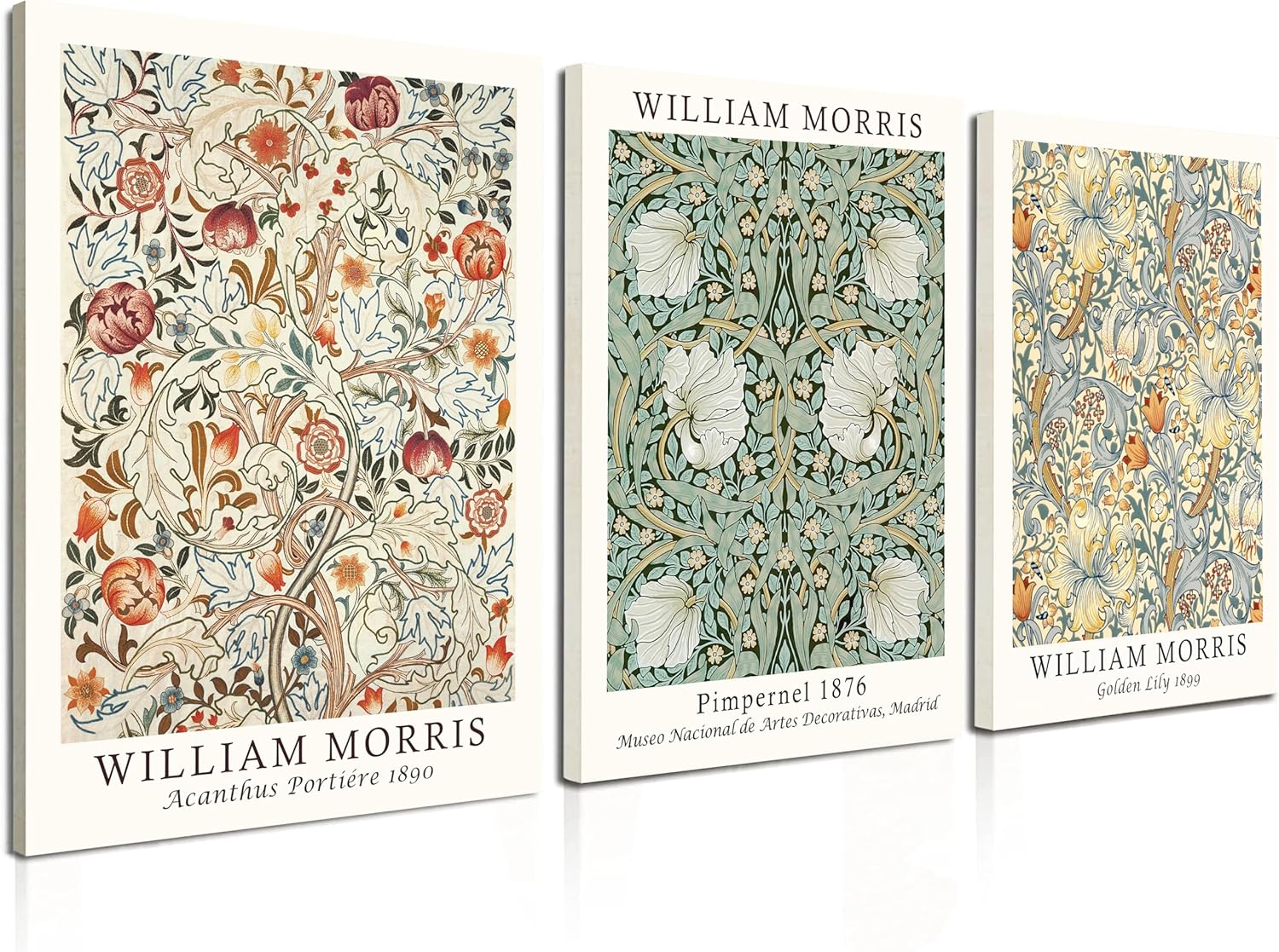 Induslyfe Framed Flower Wall Art Canvas Decor Set of 3, William Morris Wall Art Framed Prints Posters Mid Century Modern Art, Aesthetic Floral Botanical wall art for bedroom living room bathroom 12x16