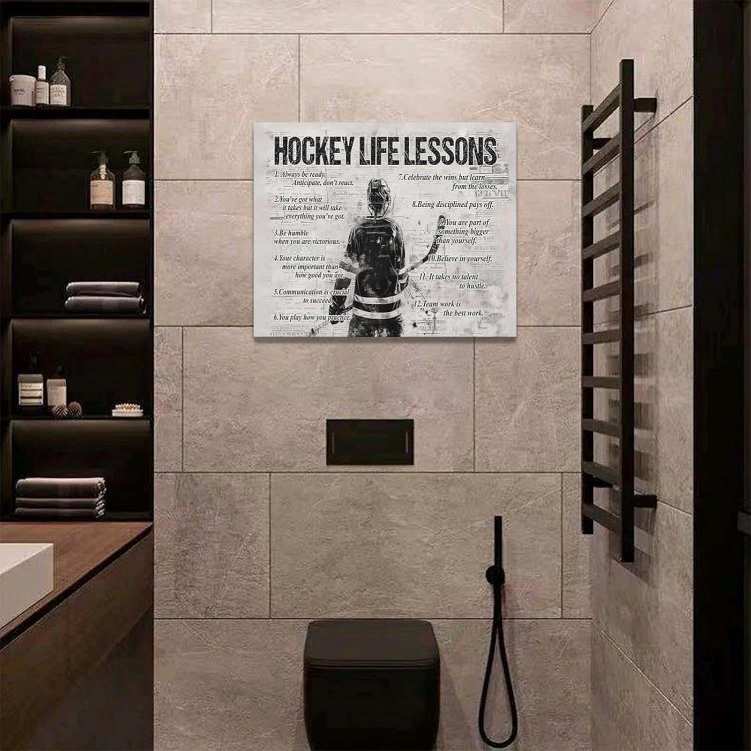 Hockey Sports Wall Art Hockey Life Lessons Wall Decor Hockey Sign Retro Poster Boy Men Motivational Decorations Canvas Print Painting Artwork for Bedroom Bathroom Living Room Gym 20"x16"