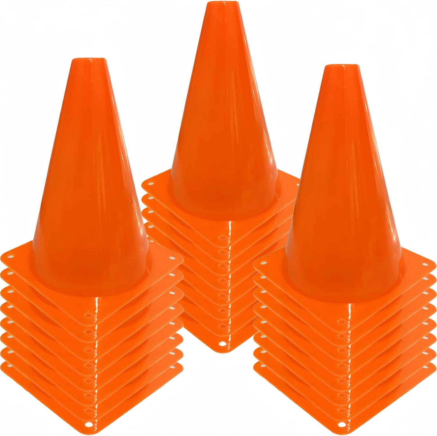 - Versatile: Set of 24 plastic orange traffic cones, 7 inches tall, ideal for various sports drills, training exercises, and festive events.