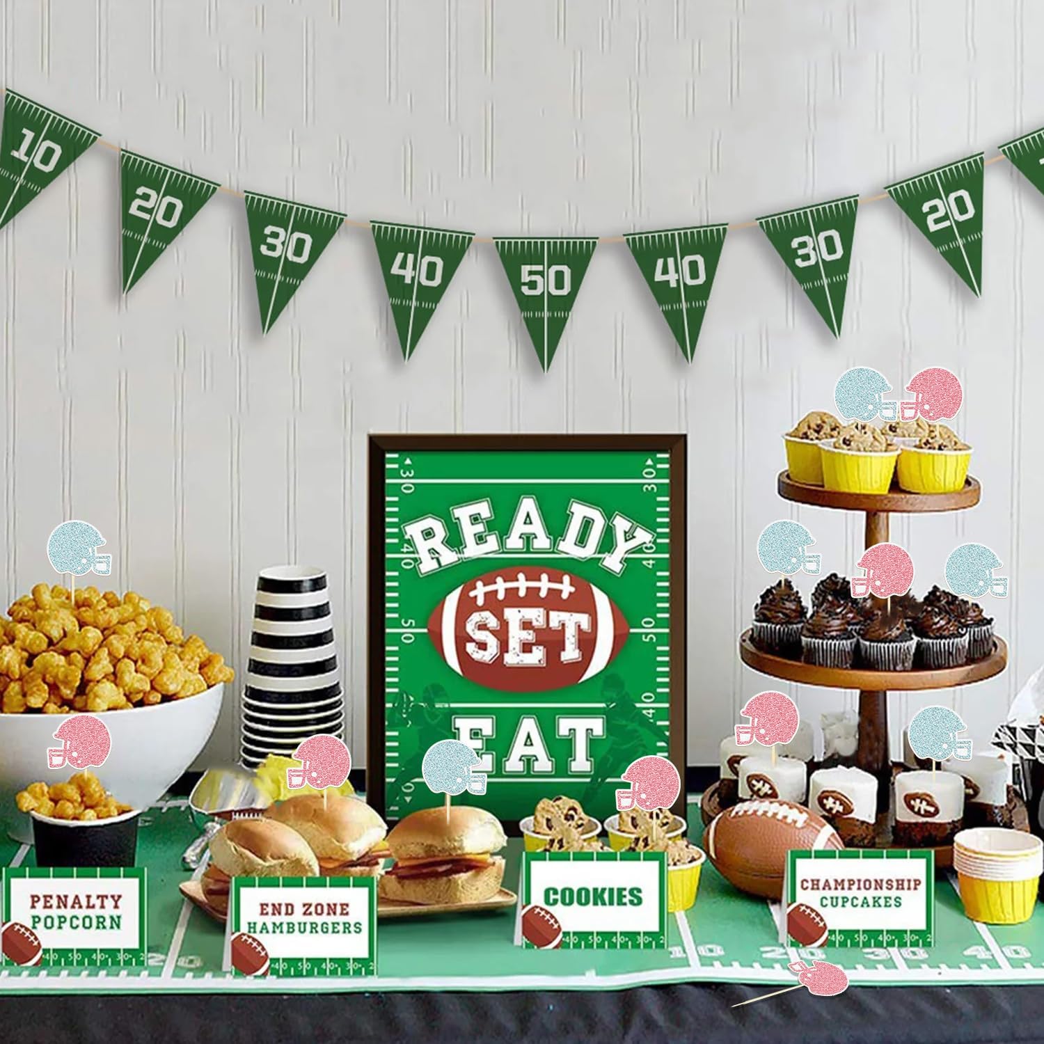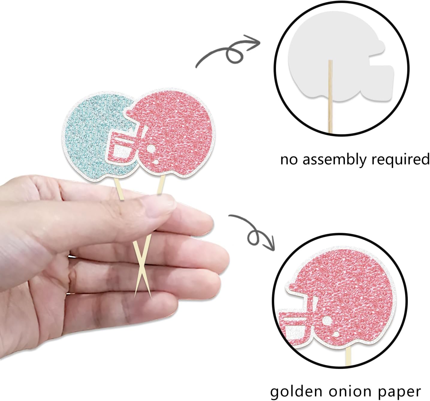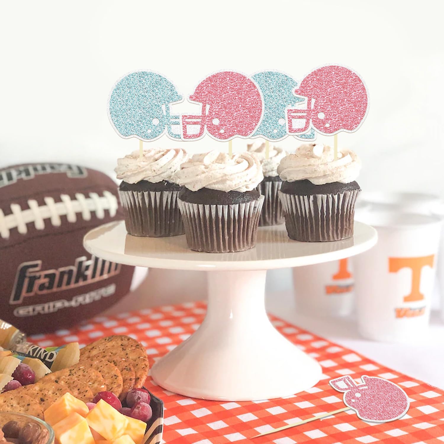 24 Pack Glitter Football Gender Reveal Helmet Cupcake Toppers Picks Boy or Girl Rugby Birthday Cake Toppers for Gender Reveal Baby Shower Birthday Party Decorations (Helmet)