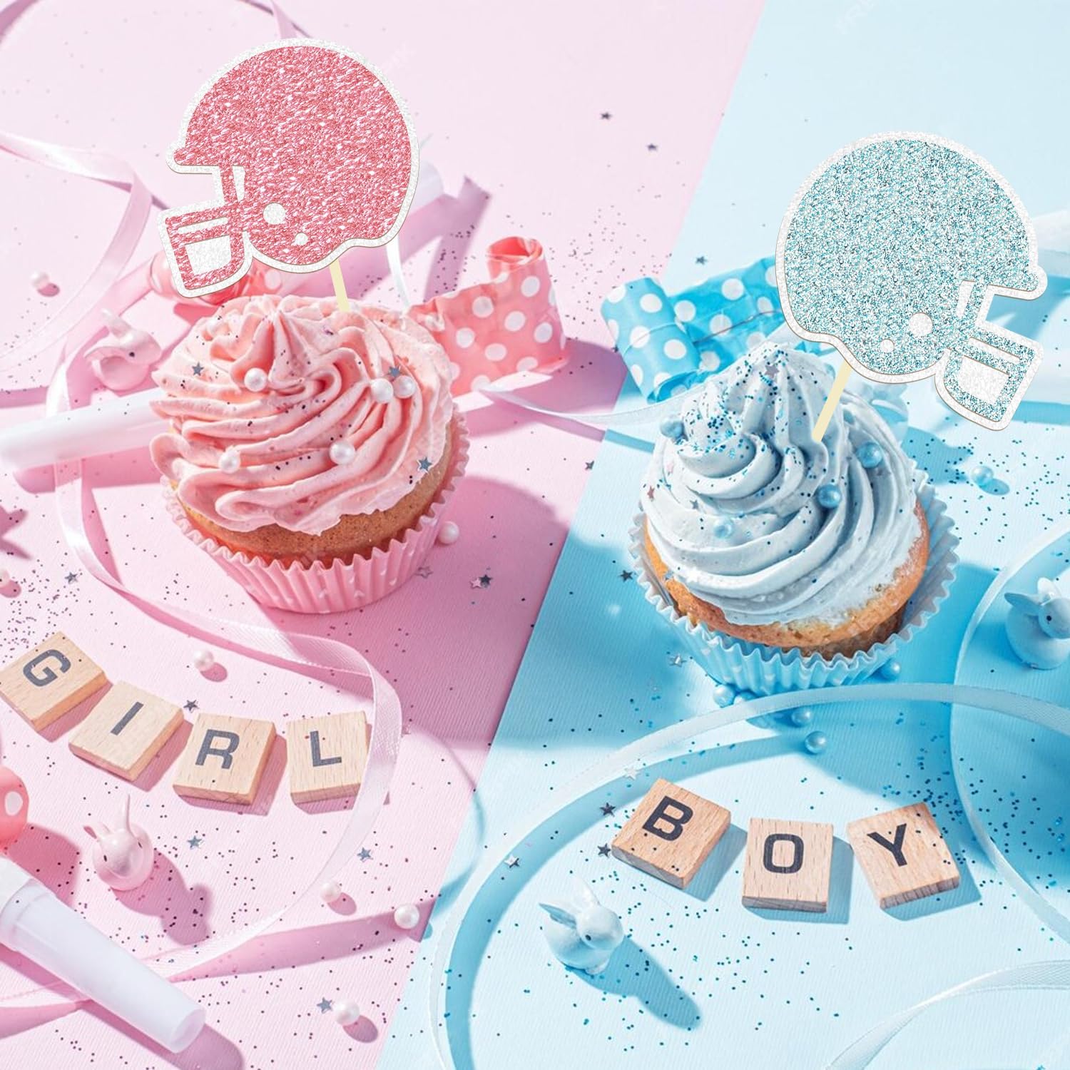 - What you will receive: You will receive 24 pieces helmet gender reveal cupcake toppers kit, 12 pcs of each design, with sufficient quantities, can meet your various cake decoration need