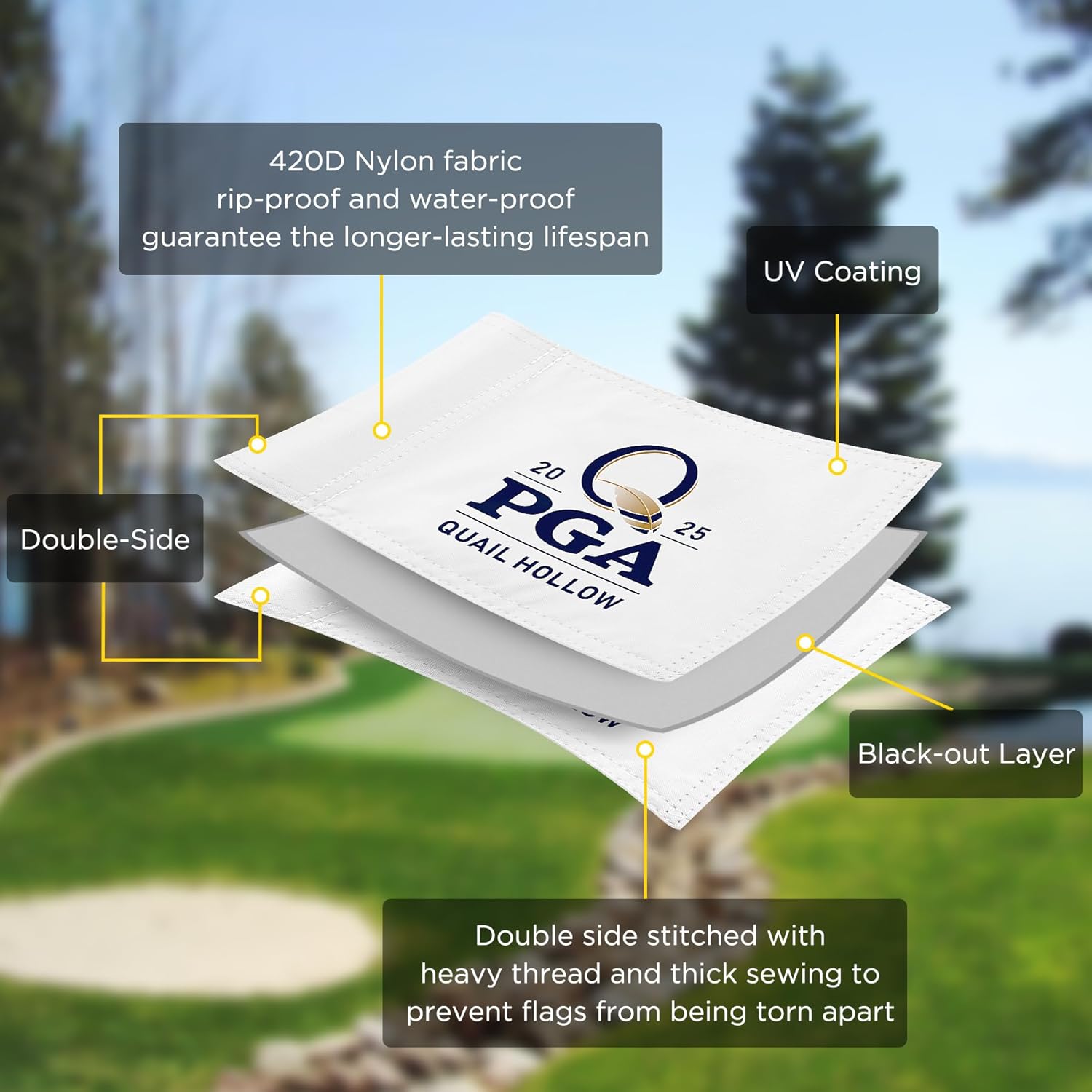 - Exclusive PGA 2025 Design: Stand out with the latest PGA-2025 pattern, exquisitely silk-screened on both sides of the 6x8 inch practice putting green flag, making it a must-have for golf enthusiasts.