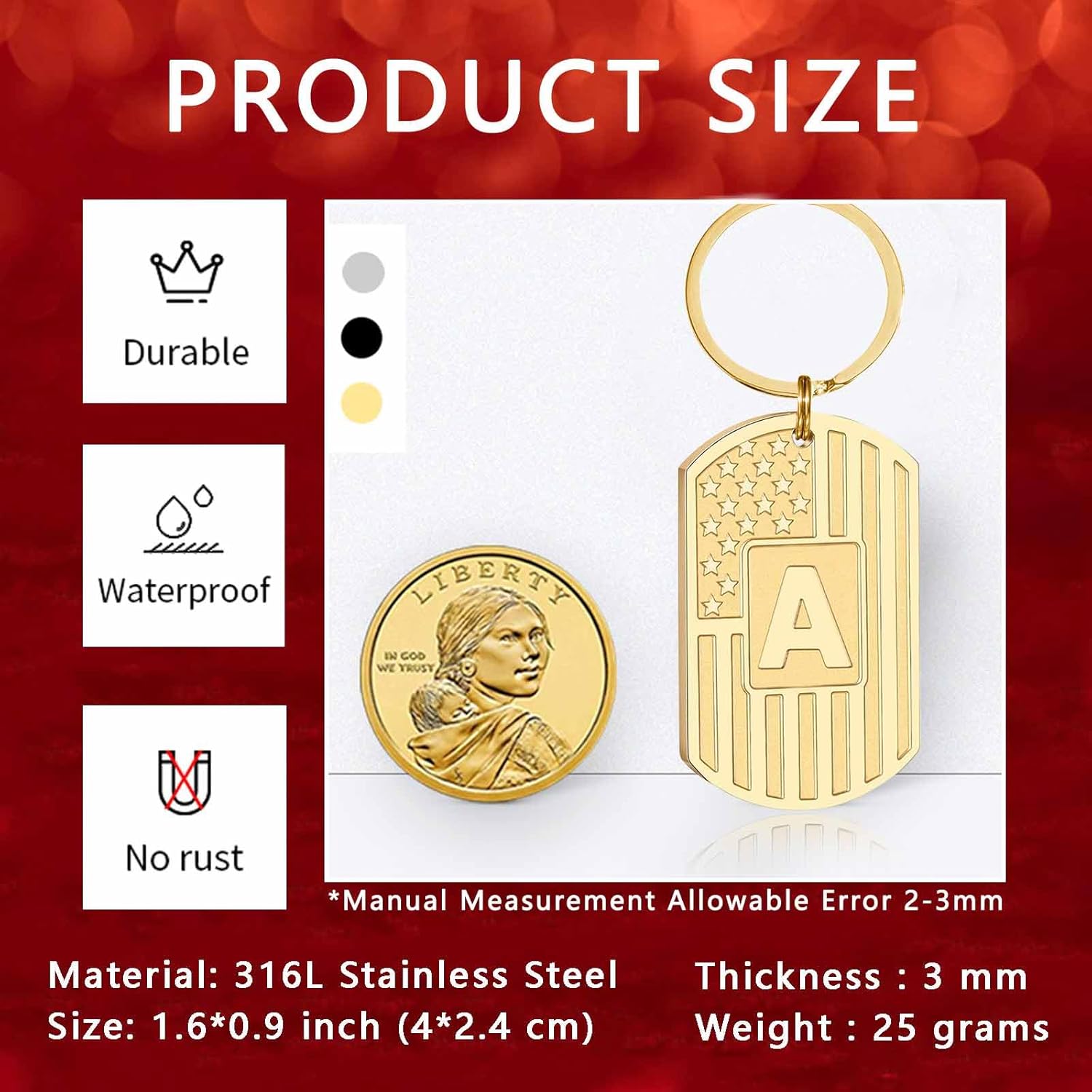Initial Keychain Gifts for Men,A-Z Letter American Flag Dog Tag Stainless Steel Keychain,Mens Accessories Gift