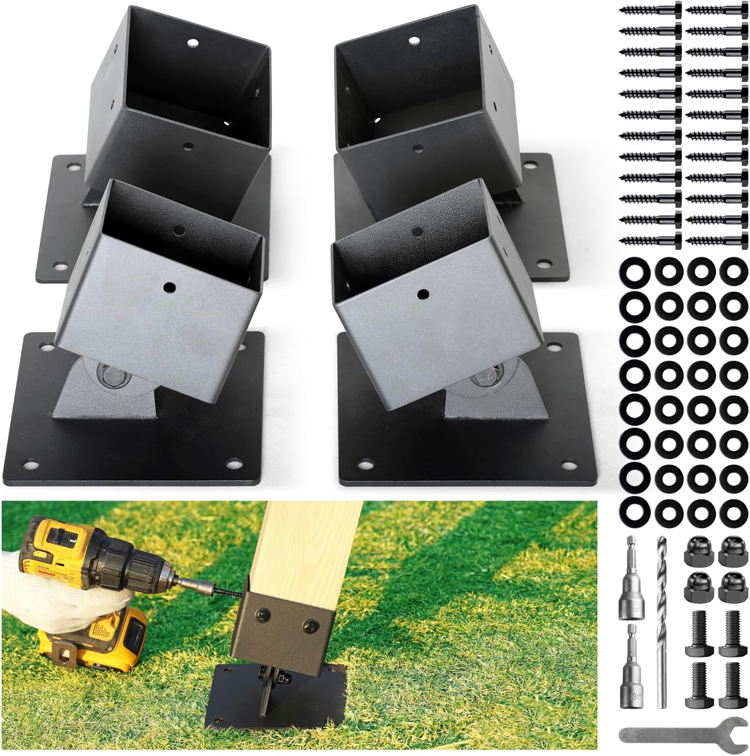 Hulave 201 Stainless Steel Swing Set Anchor Leveling Kit, Swing Set Leveling Base Bracket, Fits 4 x 4 (Actual Size 3.5" x 3.5") Wood Legs, Avoids Moisture to Protect Wooden Legs (4pack - Black)