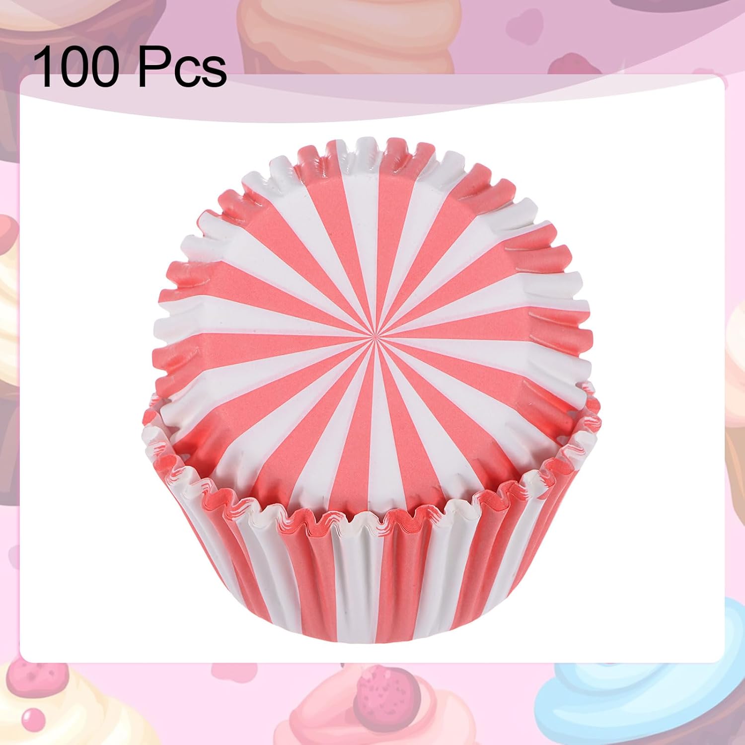 HARFINGTON 100 Count Cupcake Liners Red Stripe Cupcake Cups Standard Size Muffins Liners Papers Baking Cups Wrappers Greaseproof for Party Wedding Birthday